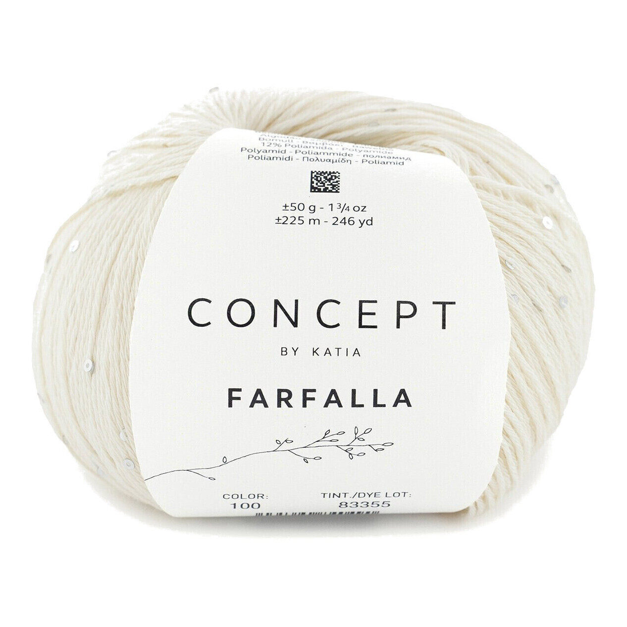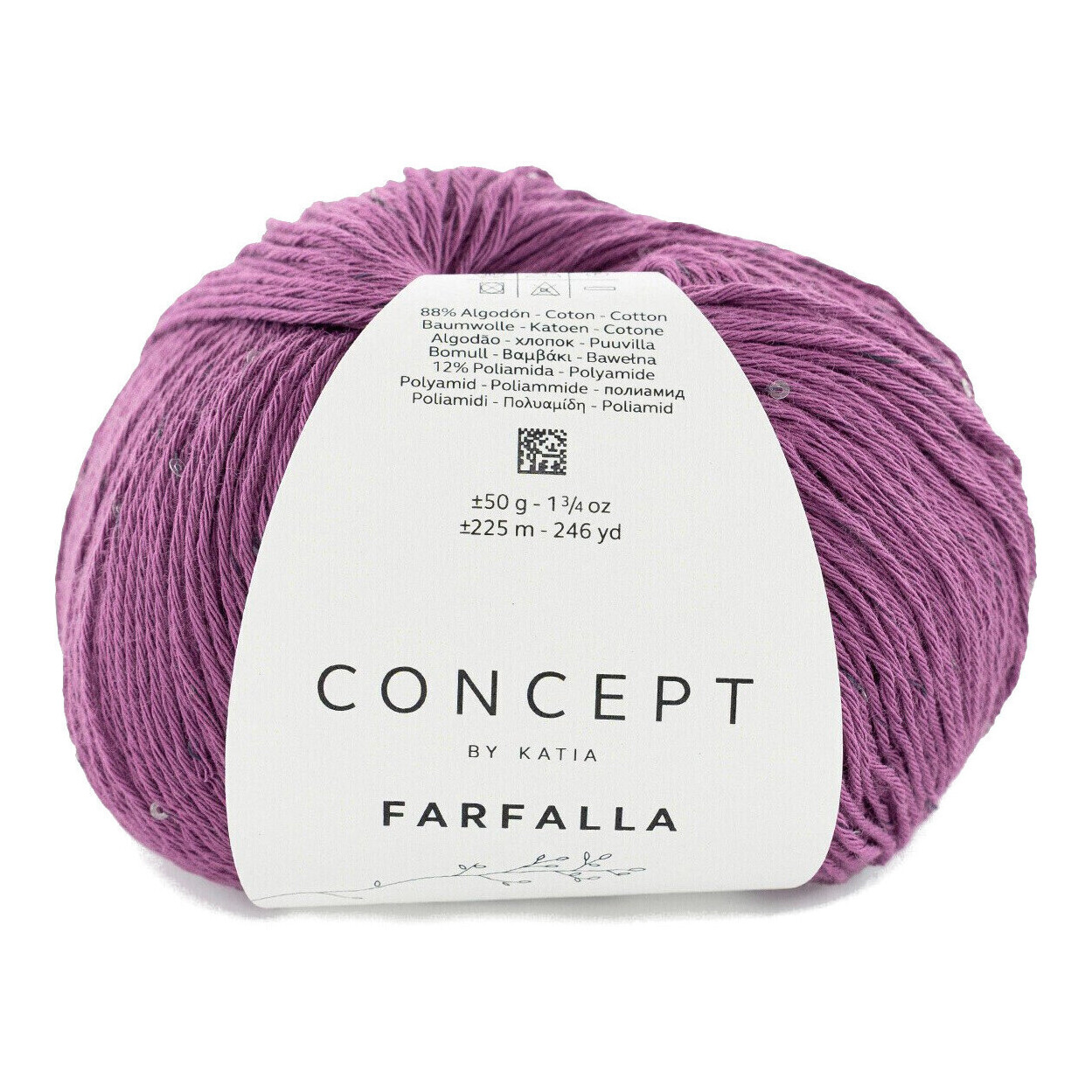 Verleihen Sie Ihren Kleidungsstücken mit Concept Farfalla einen eleganten Akzent. Das Baumwollgarn mit feinen Mikro-Pailletten lässt jede Kreation dezent funkeln. Sehr weich und vielseitig - ideal zum Stricken oder Häkeln der schönsten Sommerteile.