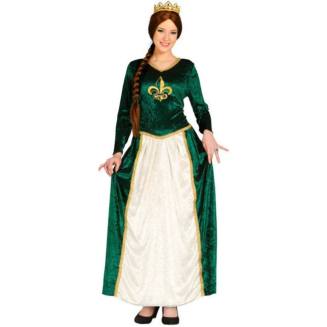 Schönes Kostüm im mittelalterlichen Stil, mit dem man auch in die Rolle von Fiona, der Braut von Shrek, dem berühmten Oger, schlüpfen kann.