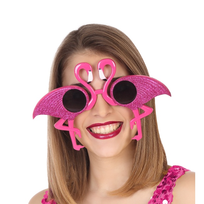 Sie ist aus Kunststoff gefertigt und jedes Auge hat die Form eines Flamingos mit einem Glitzerkörper.