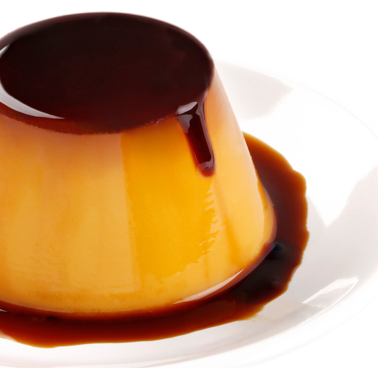 Zutaten Flan: Zucker, Verdickungsmittel (Carrageen), Aromen, Sonnenblumenöl und Farbstoffe (E160b (ii) und Kurkumin).