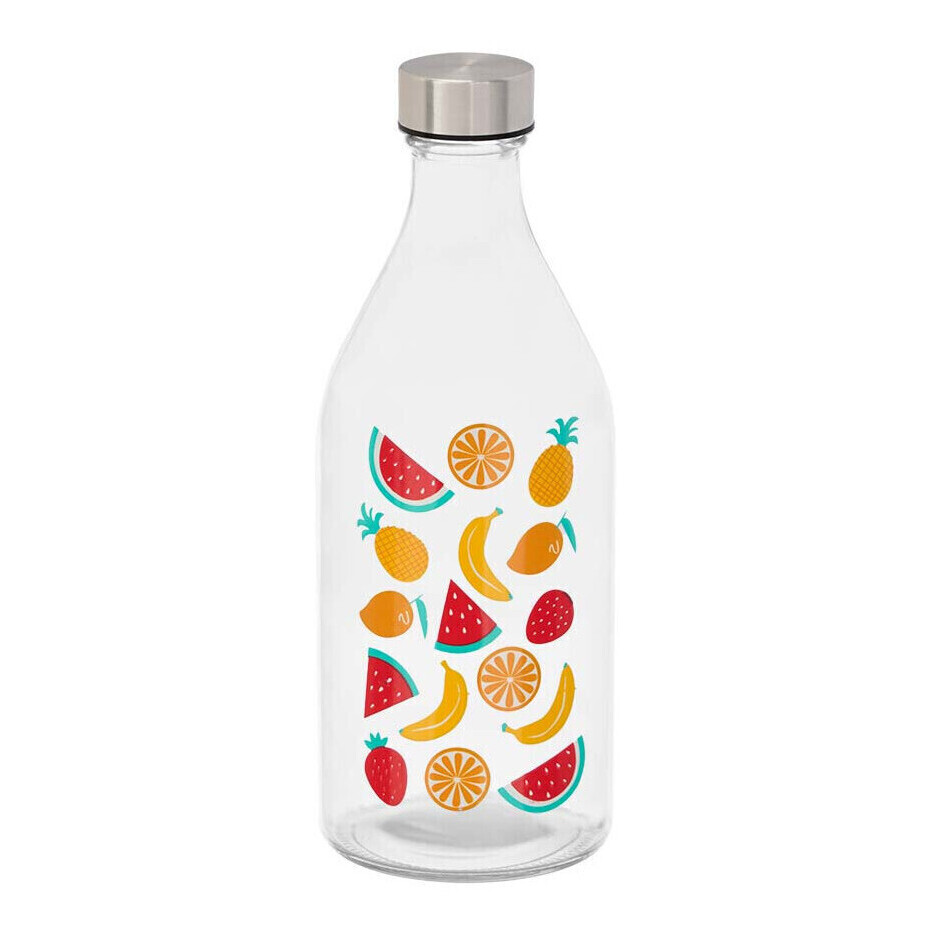 Flasche mit 1 Liter Füllmenge und Fruchtmotiv mit Stahlverschluss