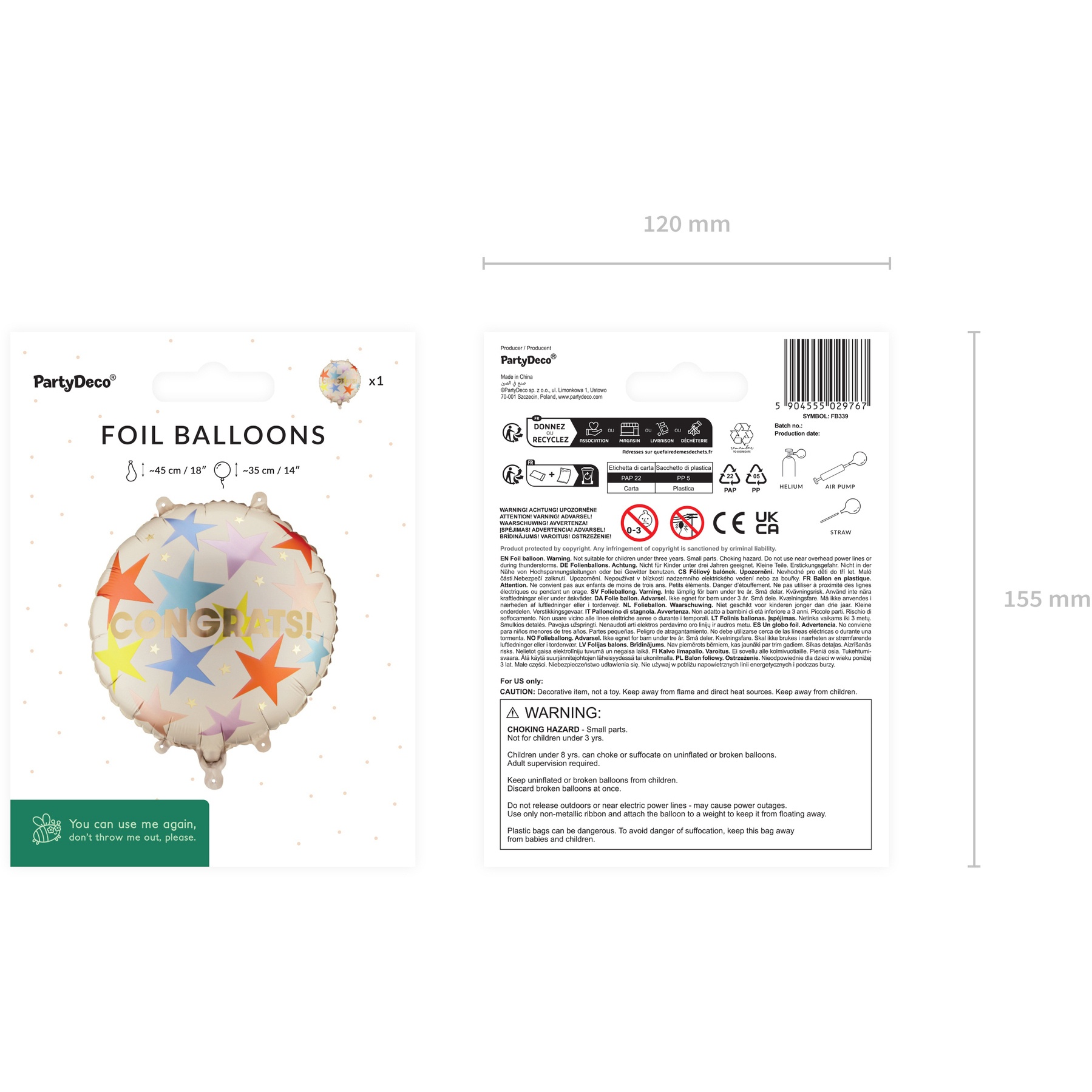 Folienballon 'Congrats' mit bunten Sternen, 35 cm