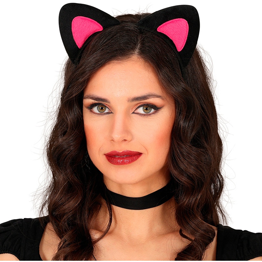 Fuchsia und schwarzes Kitty-Katzen-Stirnband