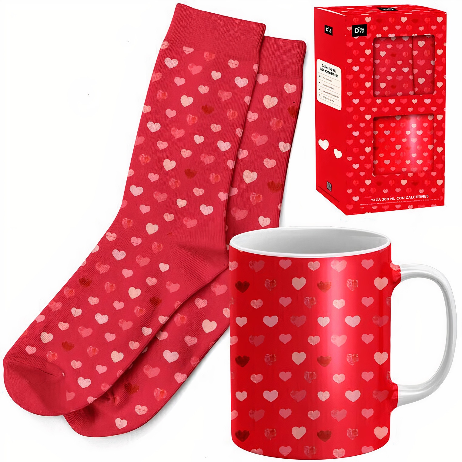 Geschenkset: Tasse und Socken mit Herzmotiv