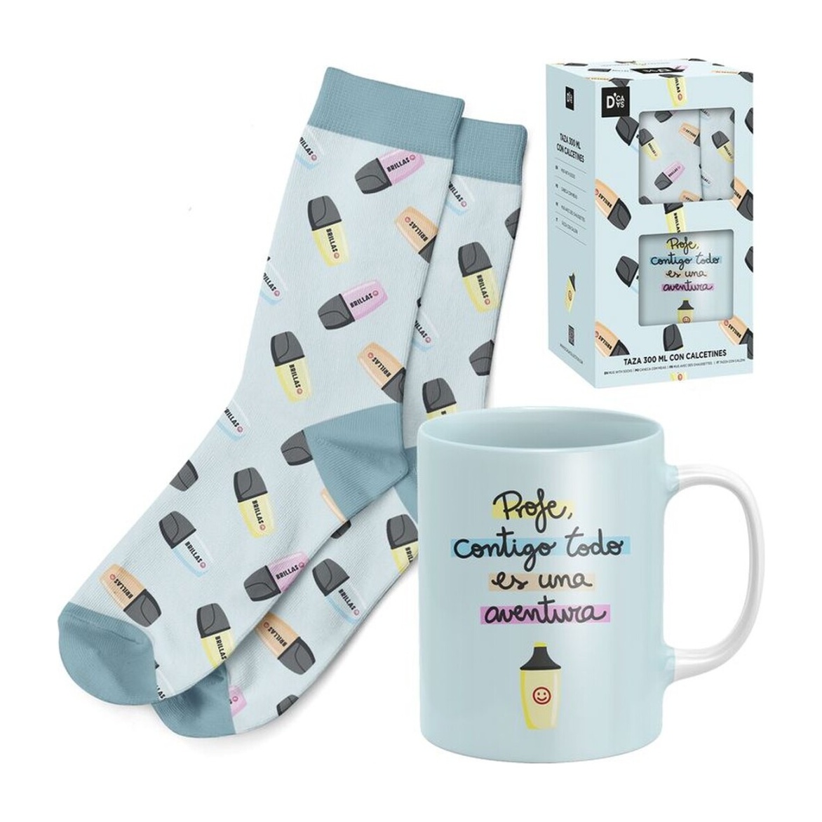 Geschenkset Tasse und Socken - 'Profe, contigo todo es una aventura'