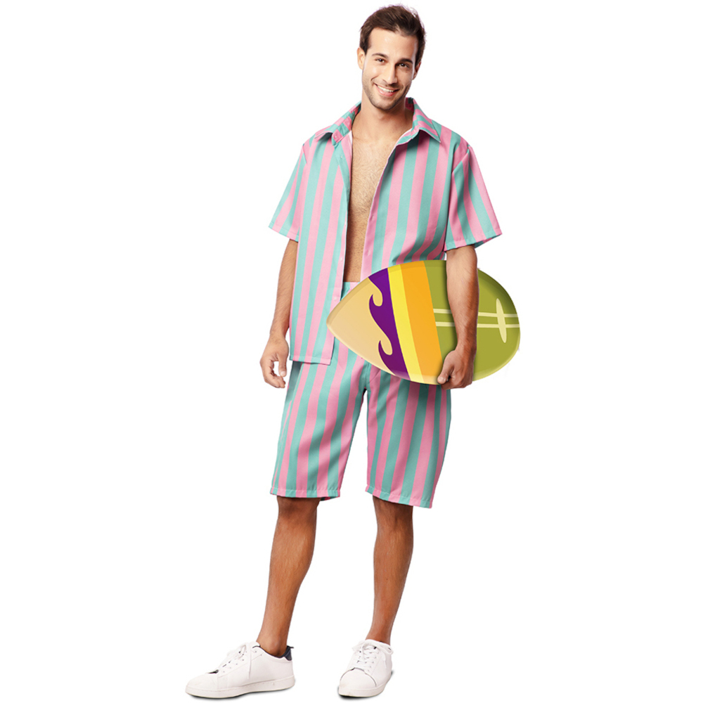 Ein witziges, gestreiftes Surferkostüm für Herren. Kräftige Farben, damit Sie garantiert auffallen.