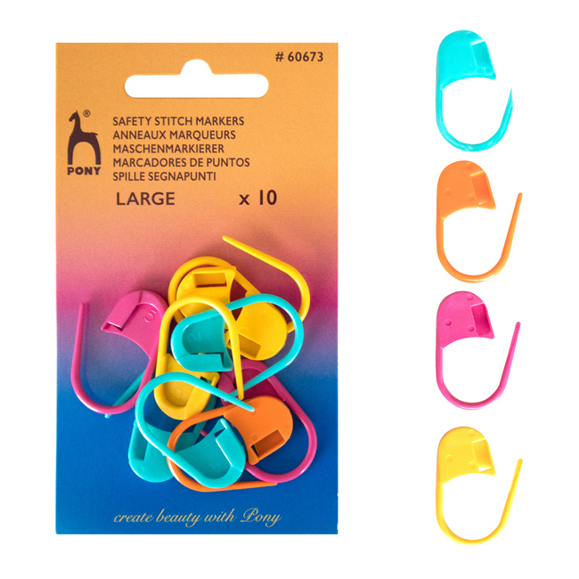 Gestrickte Marker mit 3 cm langer Spange - Pony - 10 Stück.