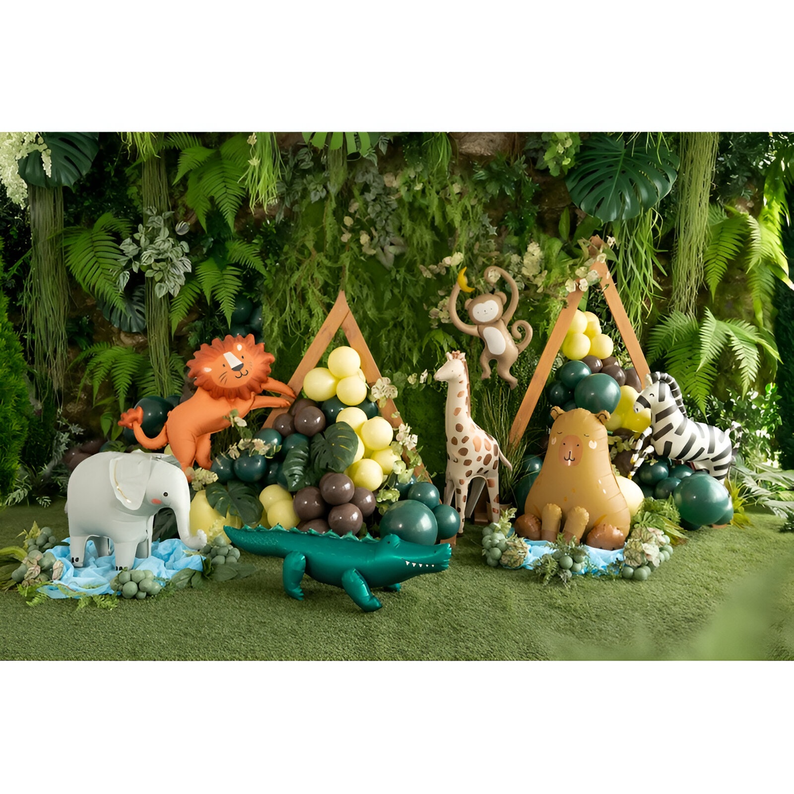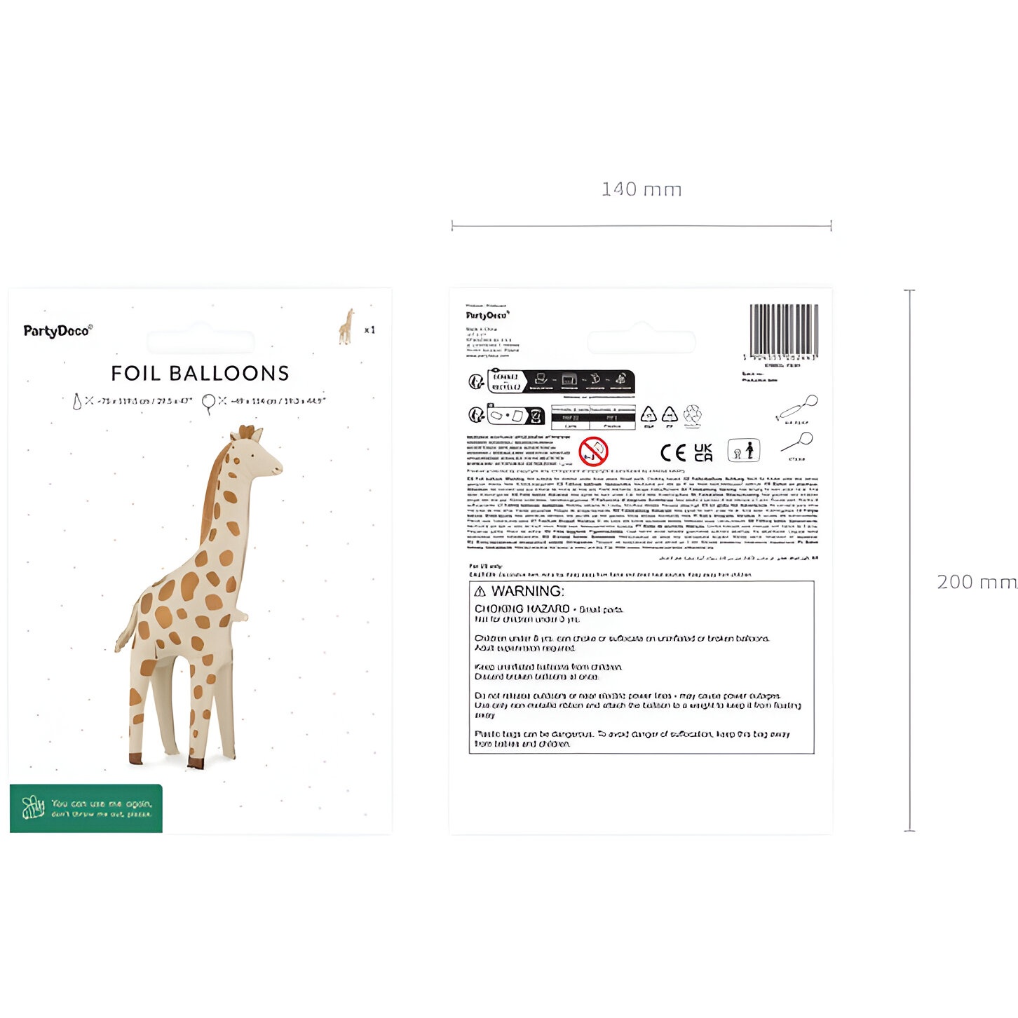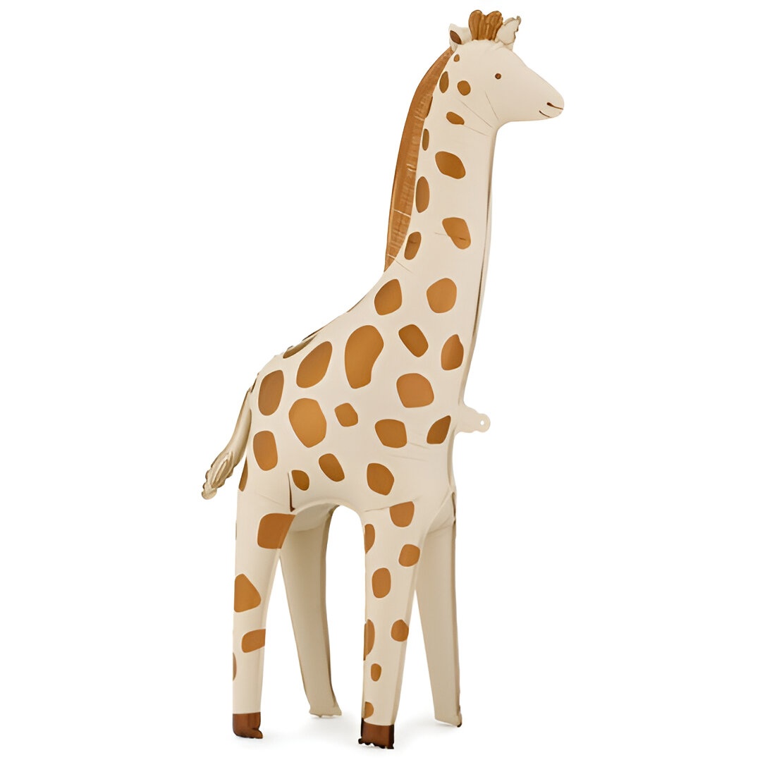 Aufrecht stehender Giraffenballon in hellen Beigetönen und Braun, mit hohem, auffälligem Design - ideal, wenn Sie eine kindgerechte Safari-Atmosphäre schaffen möchten.