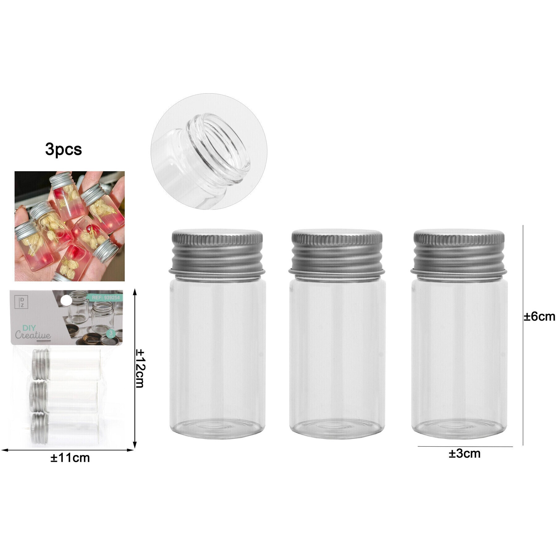 Glasflasche 6 x 3 cm mit Metallverschluss - 3 Stück