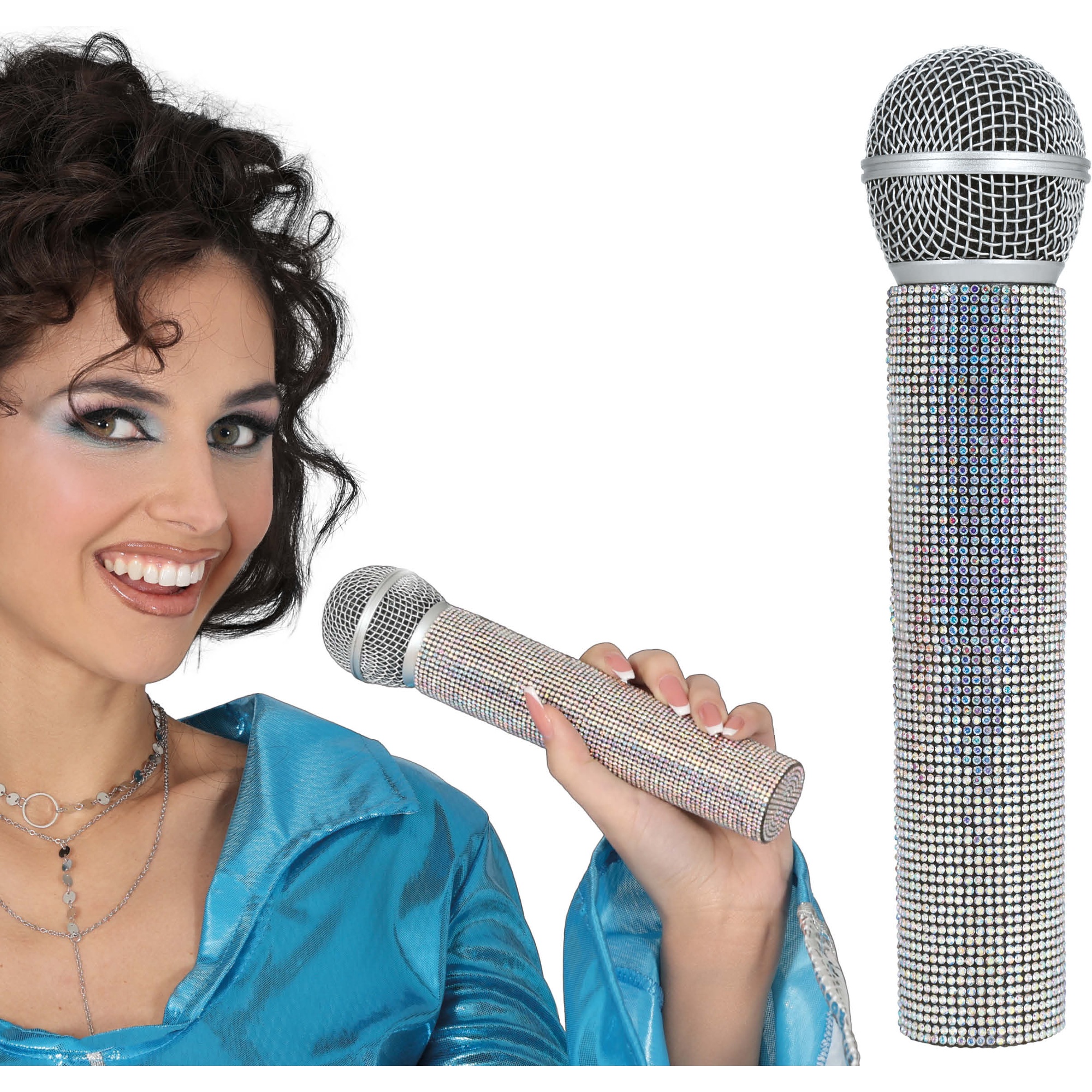 Lassen Sie Ihre Performance erstrahlen mit diesem im ABBA?Stil gestalteten Mikrofon, das jedem Kostüm und Auftritt einen retro?glamourösen Touch verleiht. Die strassbesetzte Oberfläche fängt das Licht ein und zieht alle Blicke auf sich. Leicht und handlich - ideal für Karaoke, Mottopartys und Retro?Shows. Ein auffälliges Accessoire, das jedes Outfit in eine unvergessliche Darbietung verwandelt.