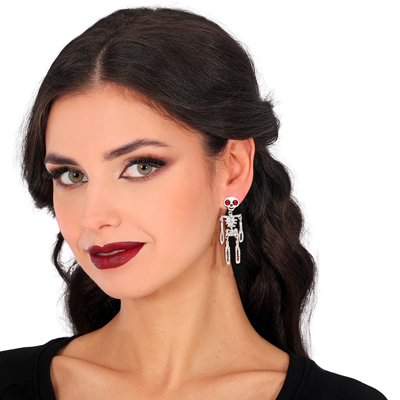 Glitzernde Skelett-Ohrringe, 6,5 cm - 1 Paar