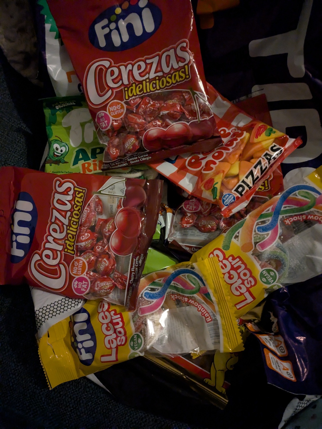 Zutaten: Glukosesirup, Zucker, Wasser, Gelatine, Säuerungsmittel: E330,E296,E270, Geliermittel: Pektin, Geschmacksstoffe, Farbstoffe: E129, E516. E129, kann negative Auswirkungen auf die Aktivität und Aufmerksamkeitsspanne von Kindern haben.