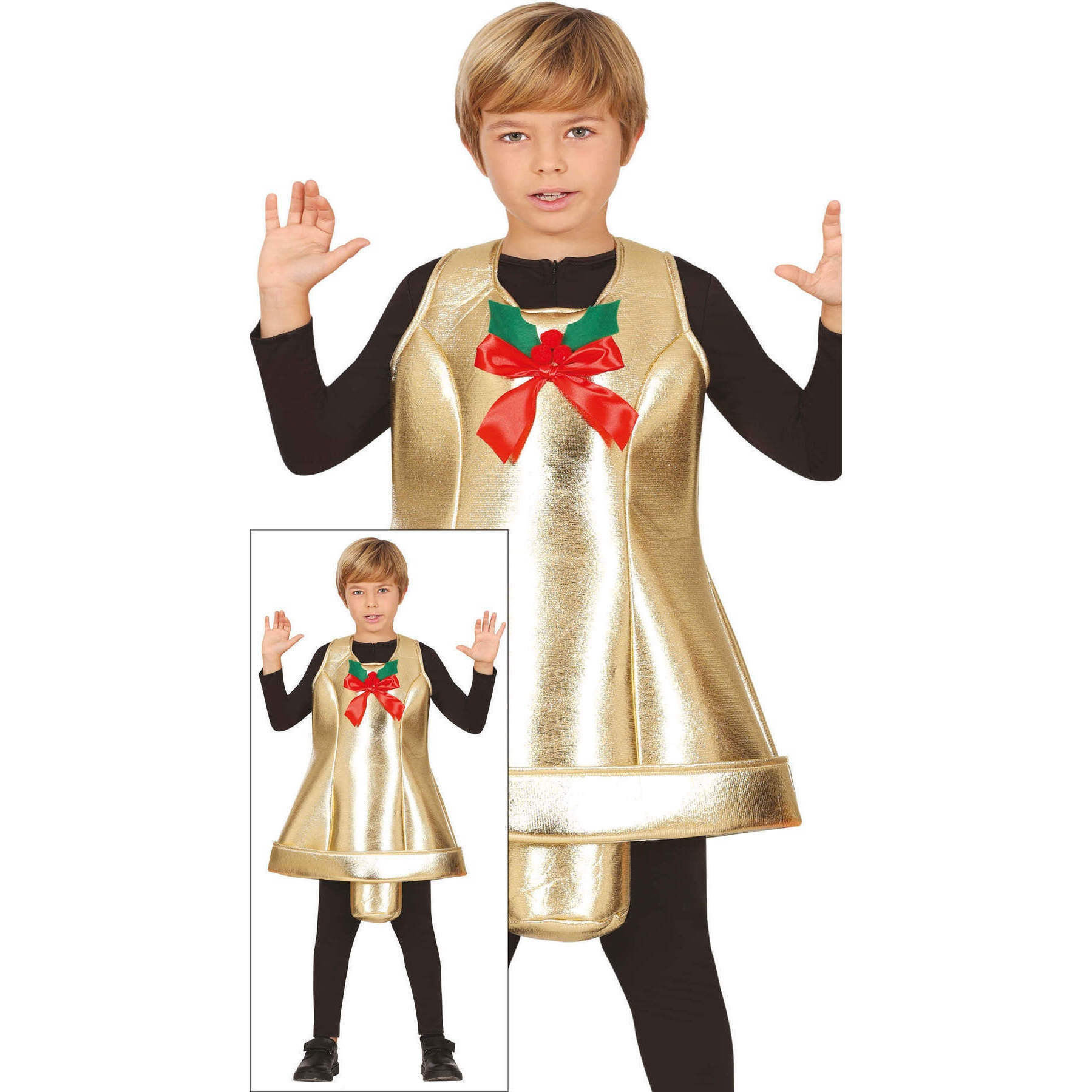 Lustiges Weihnachtsglocken-Kostüm für Kinder, ideal für Schulveranstaltungen.