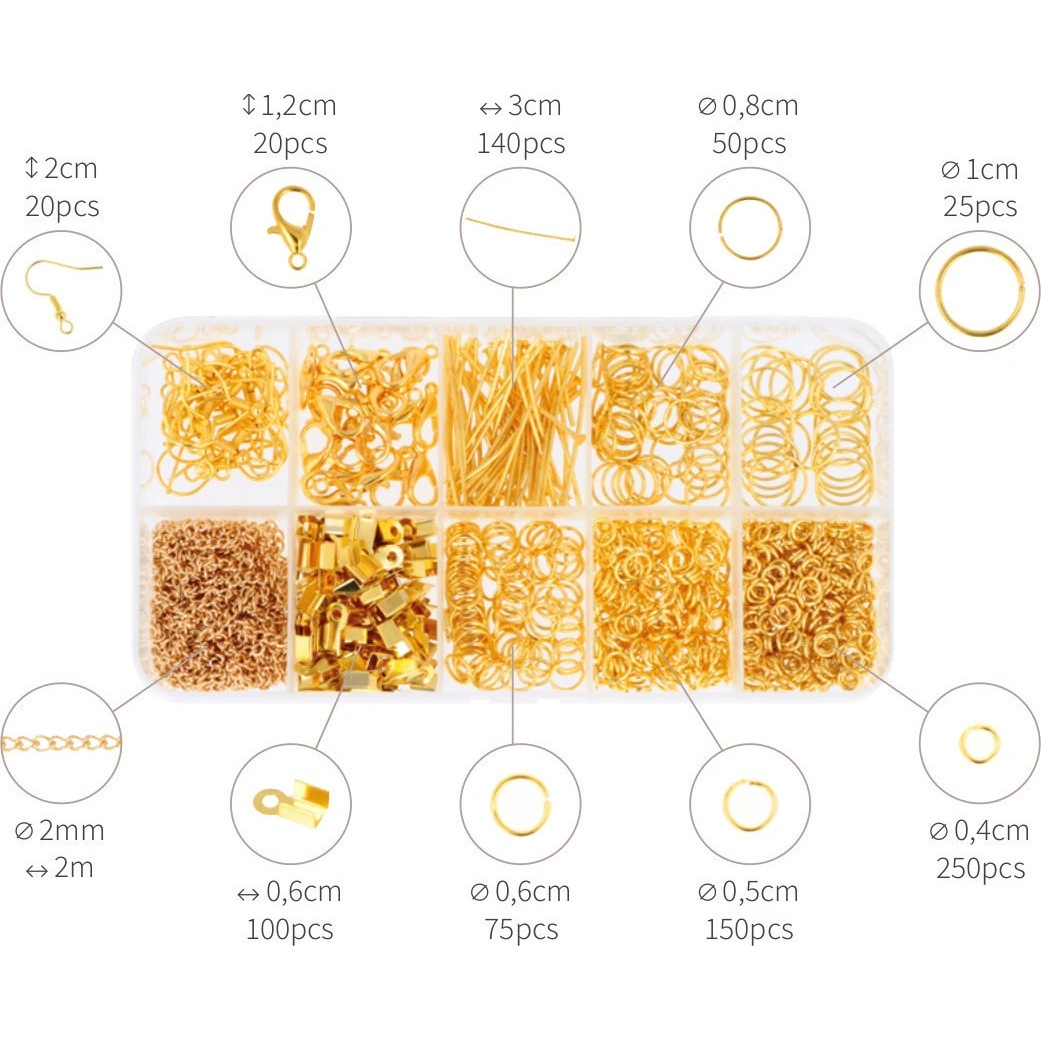 Goldfarbenes Schmuckzubehör-Set, 831-teilig