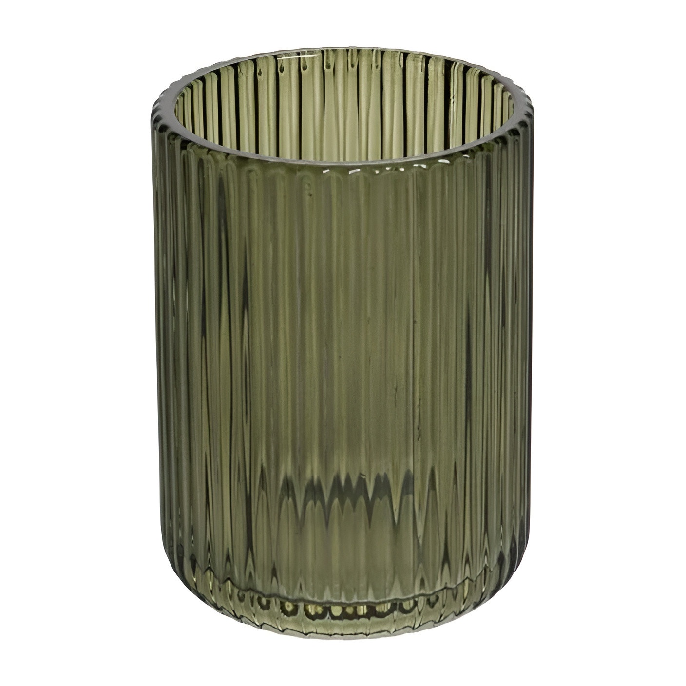 Grüner Zahnbürstenbecher mit elegantem, geriffeltem Design, das Stil und Persönlichkeit ins Bad bringt. Kompakt und funktional, ermöglicht er Ihnen, Zahnbürsten und kleine Accessoires organisiert aufzubewahren, ohne viel Platz zu beanspruchen. Seine vertikalen Linien setzen dekorative Akzente und fügen sich sowohl in moderne als auch klassische Badgestaltungen ein.