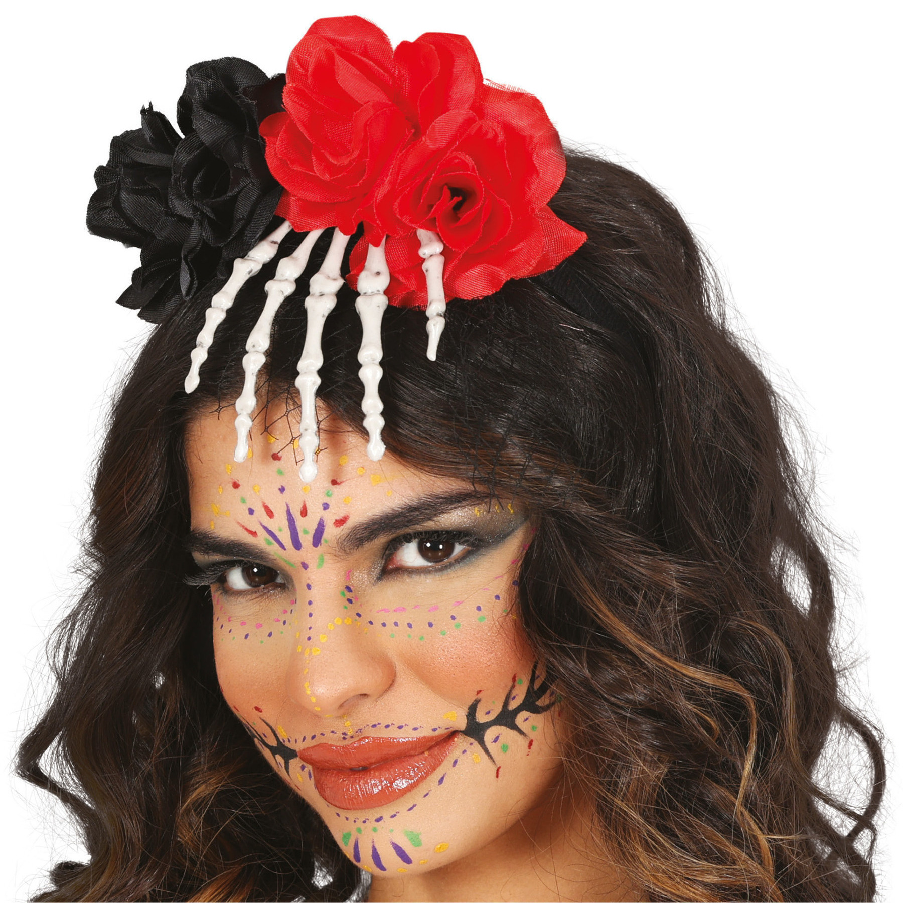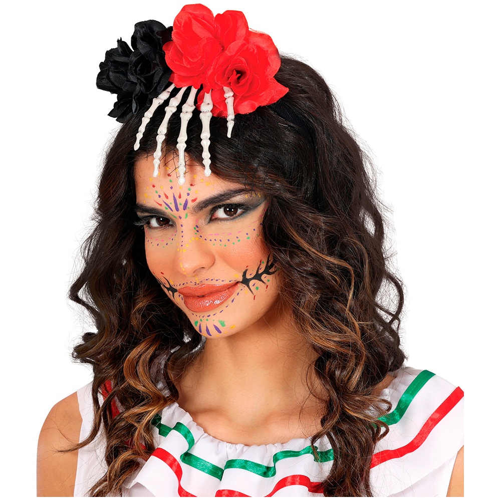 Haarreif mit Skeletthand und Blumen