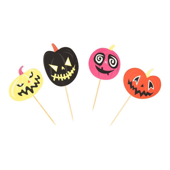 Eine Packung Cupcake-Kapseln und gruselige Picks, perfekt für die Dekoration Ihrer Desserts auf Ihren Halloween-Partys.