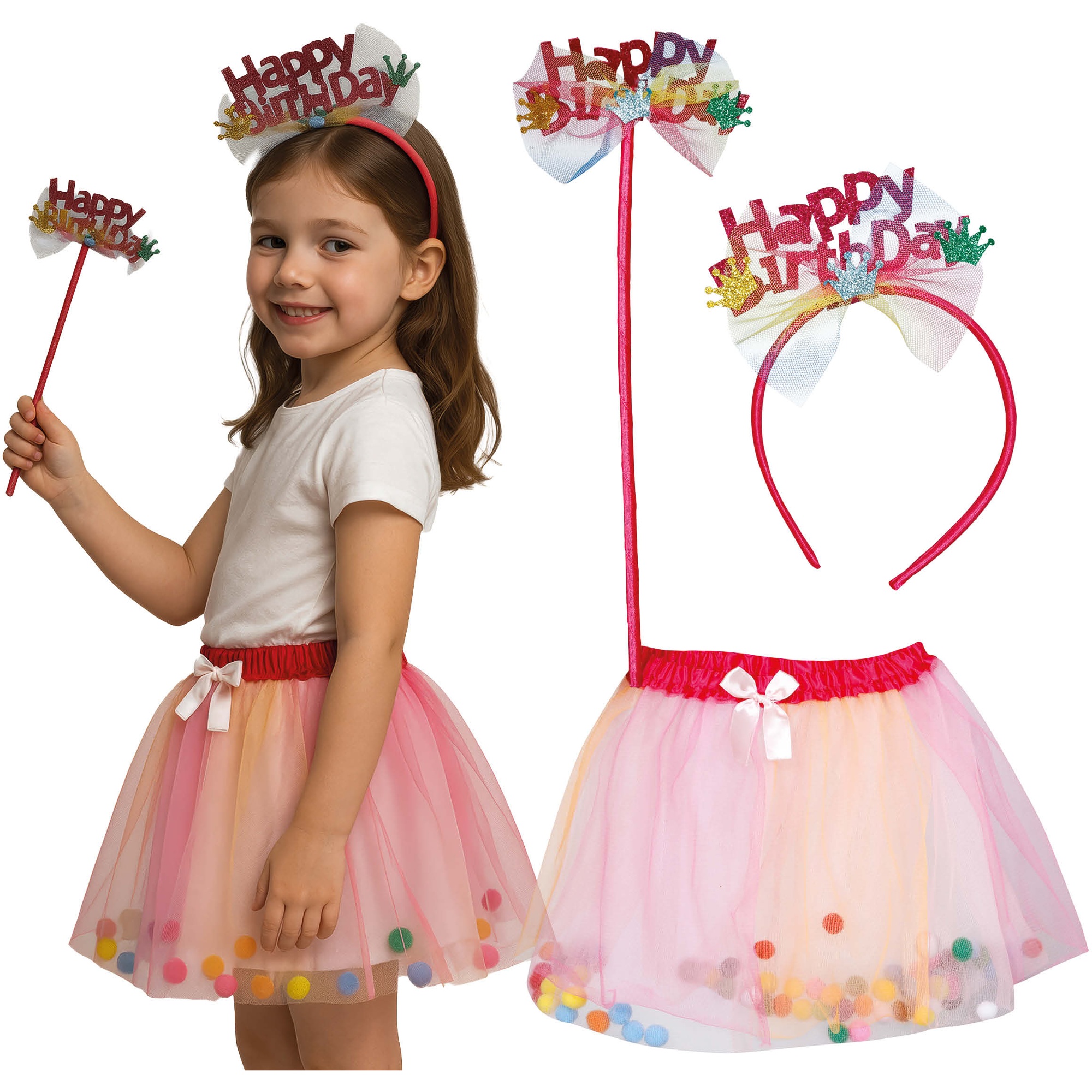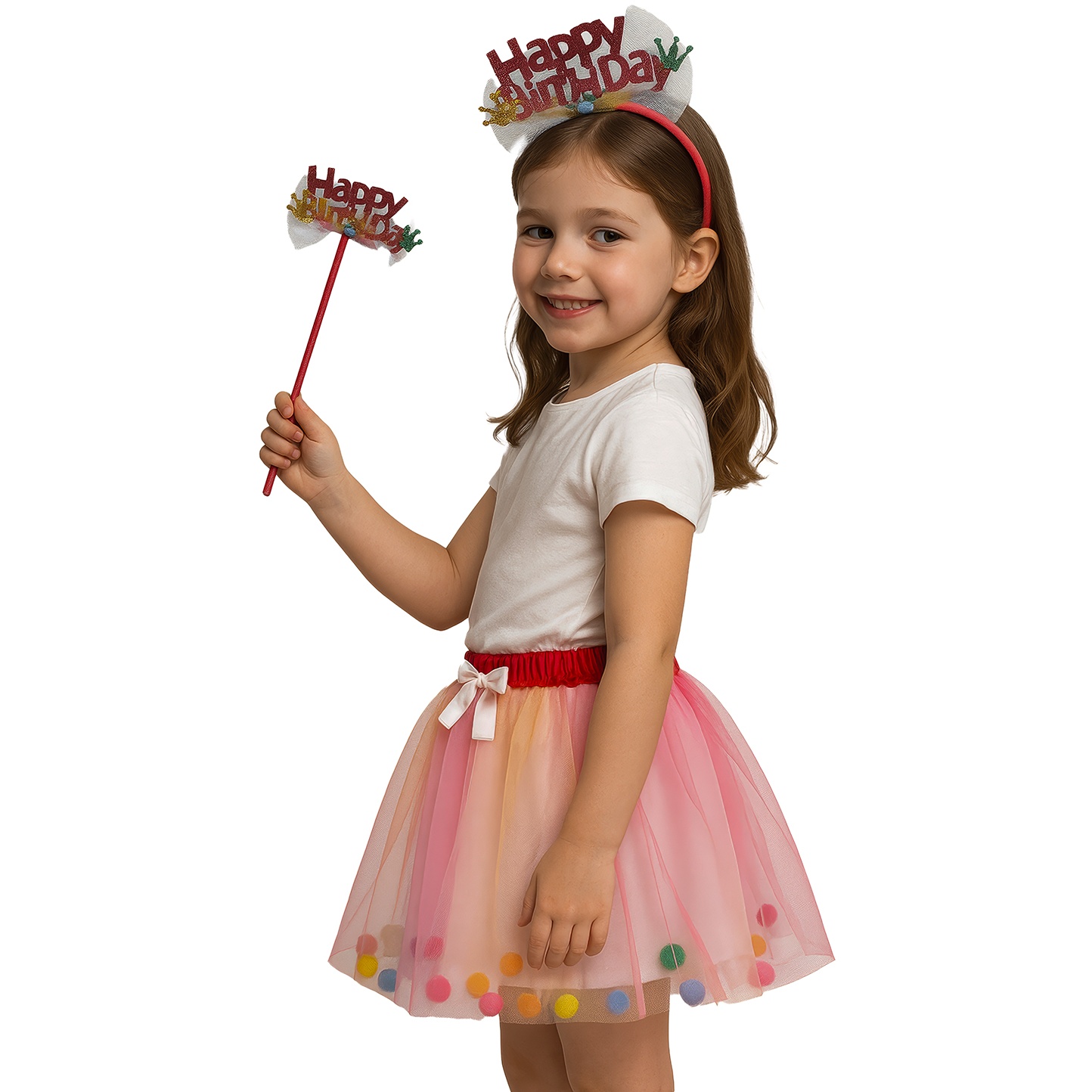 Happy Birthday-Set mit Stirnband, Tütü und Zauberstab