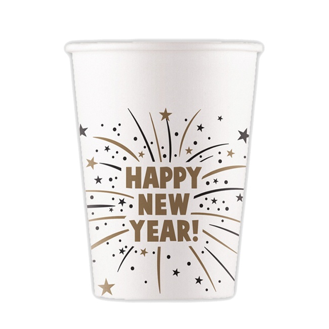 Happy New Year Schwarz-Gold-Brille 200 ml - 8 Stück.