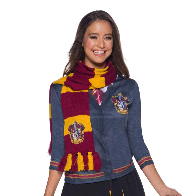 Gelb und kastanienbraun gestreifter Schal mit dem offiziellen gestickten Wappen des Gryffindor-Hauses der Hogwarts-Schüler.