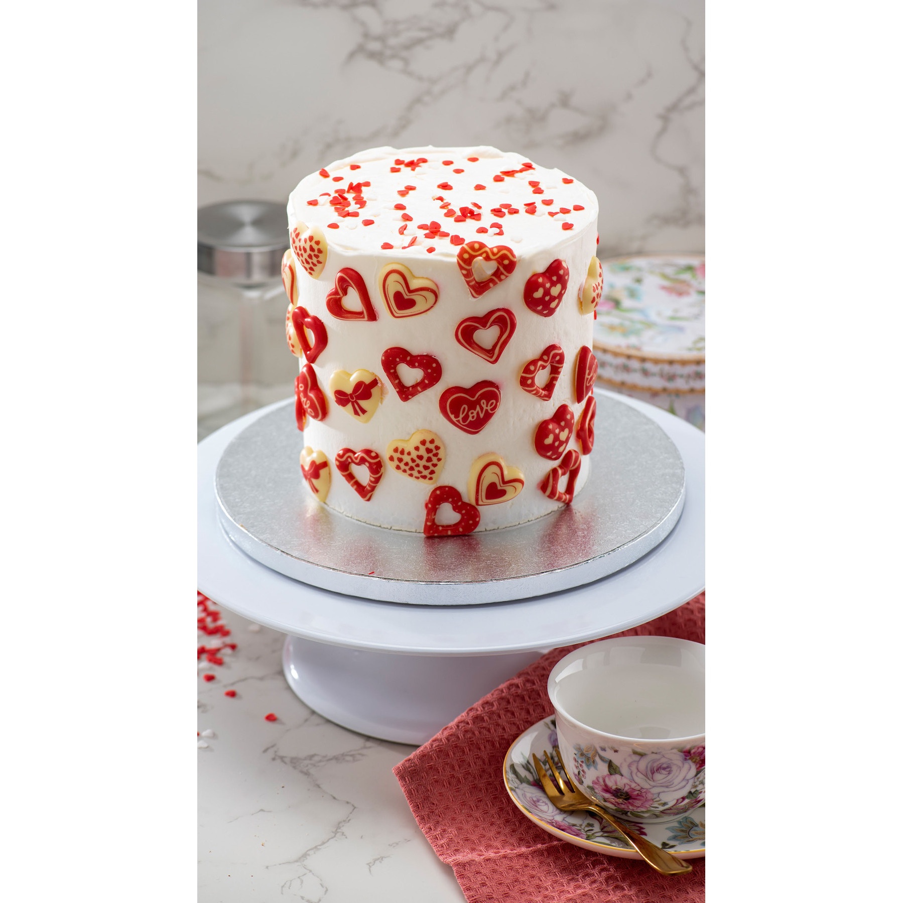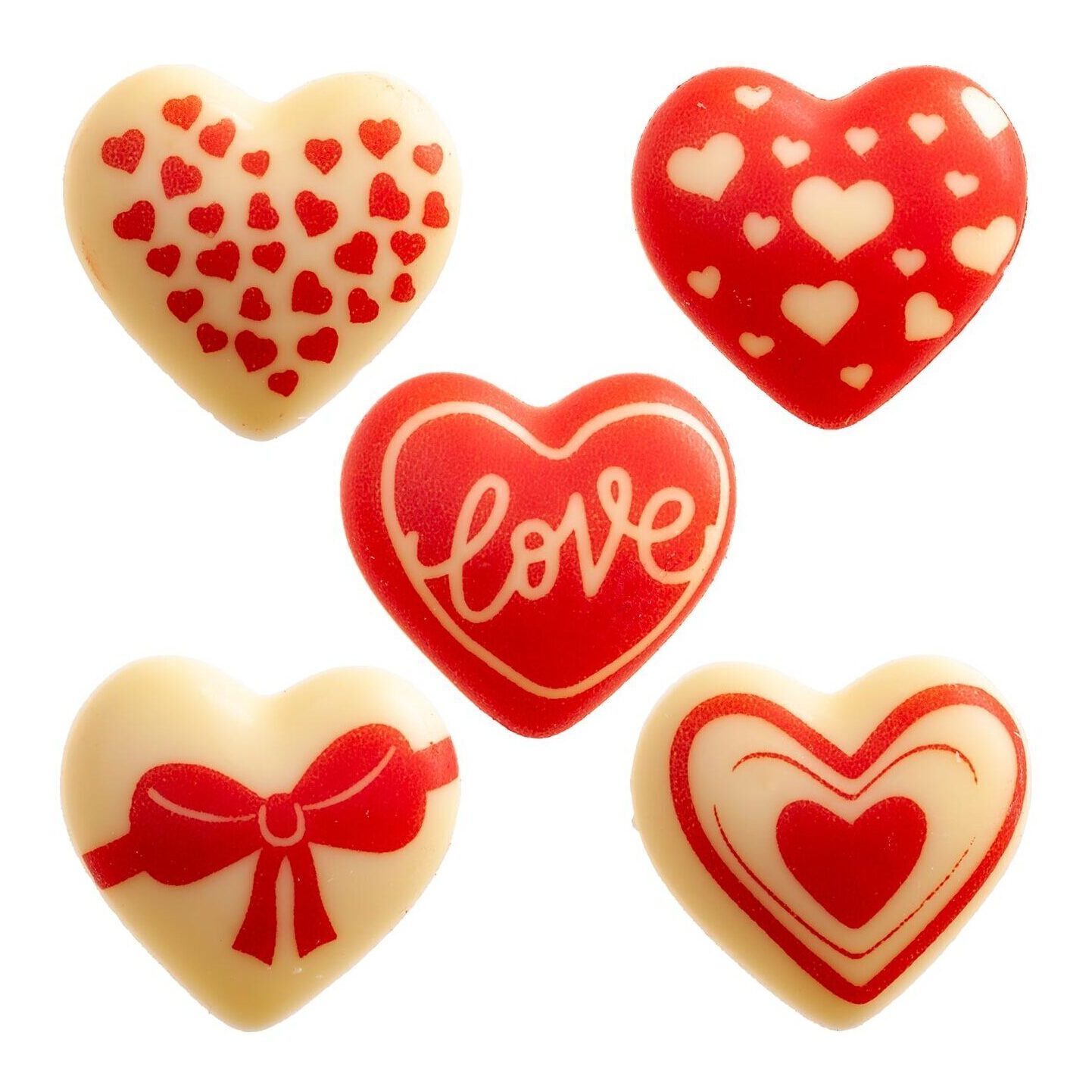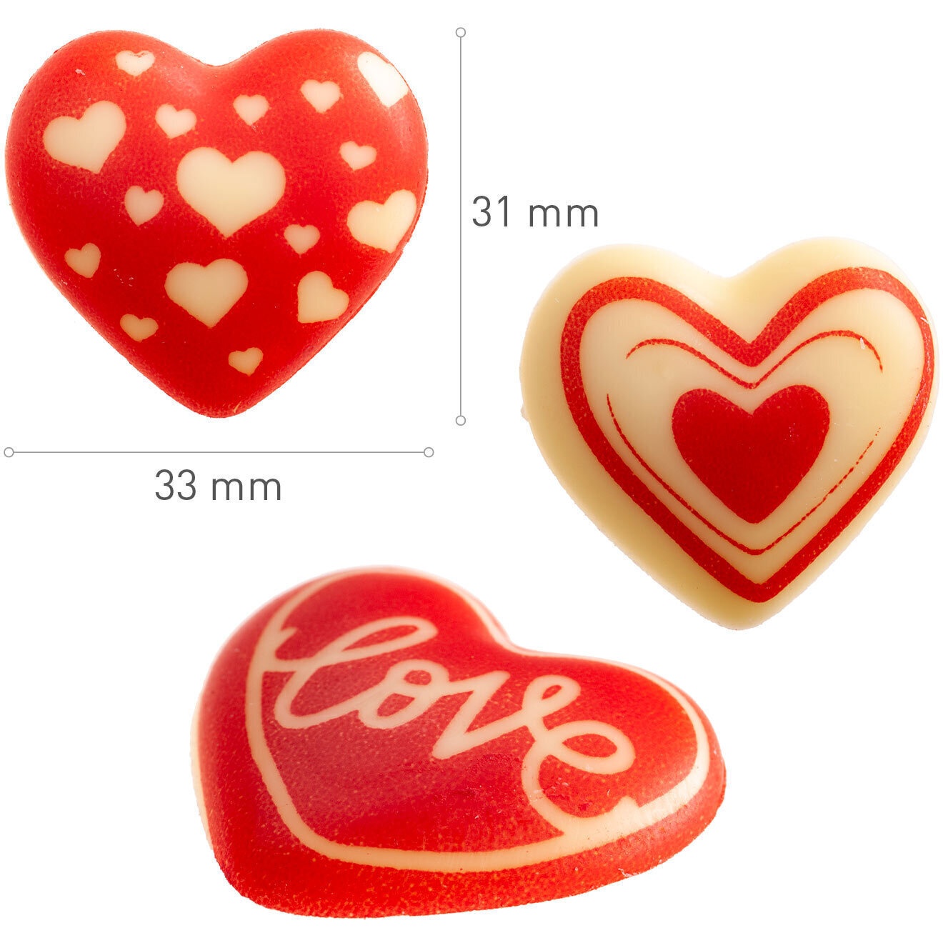 Herzförmige Figuren aus weißer Schokolade - 70 Stück