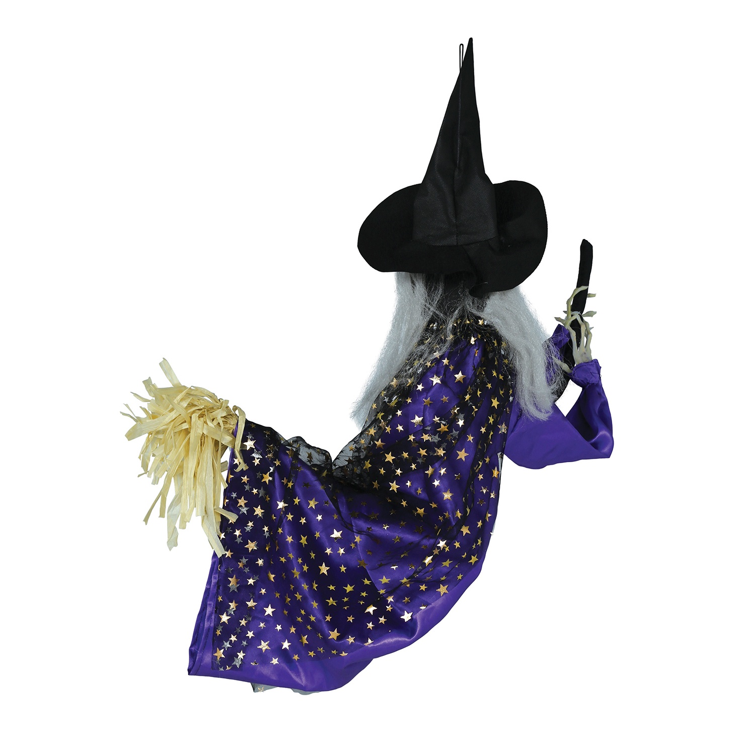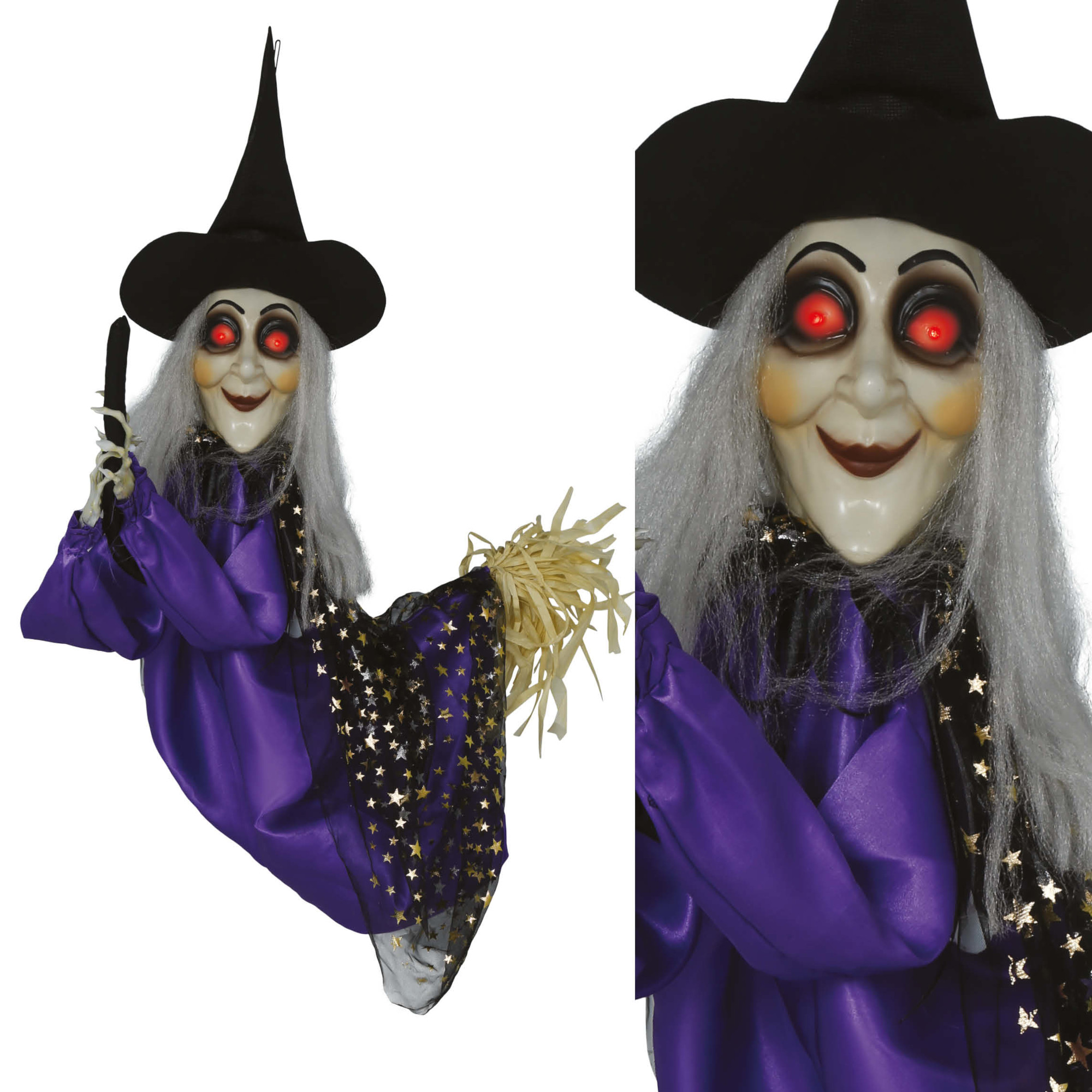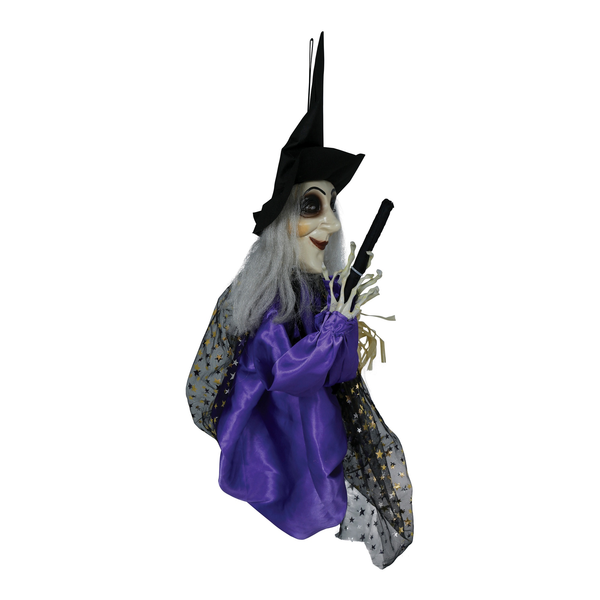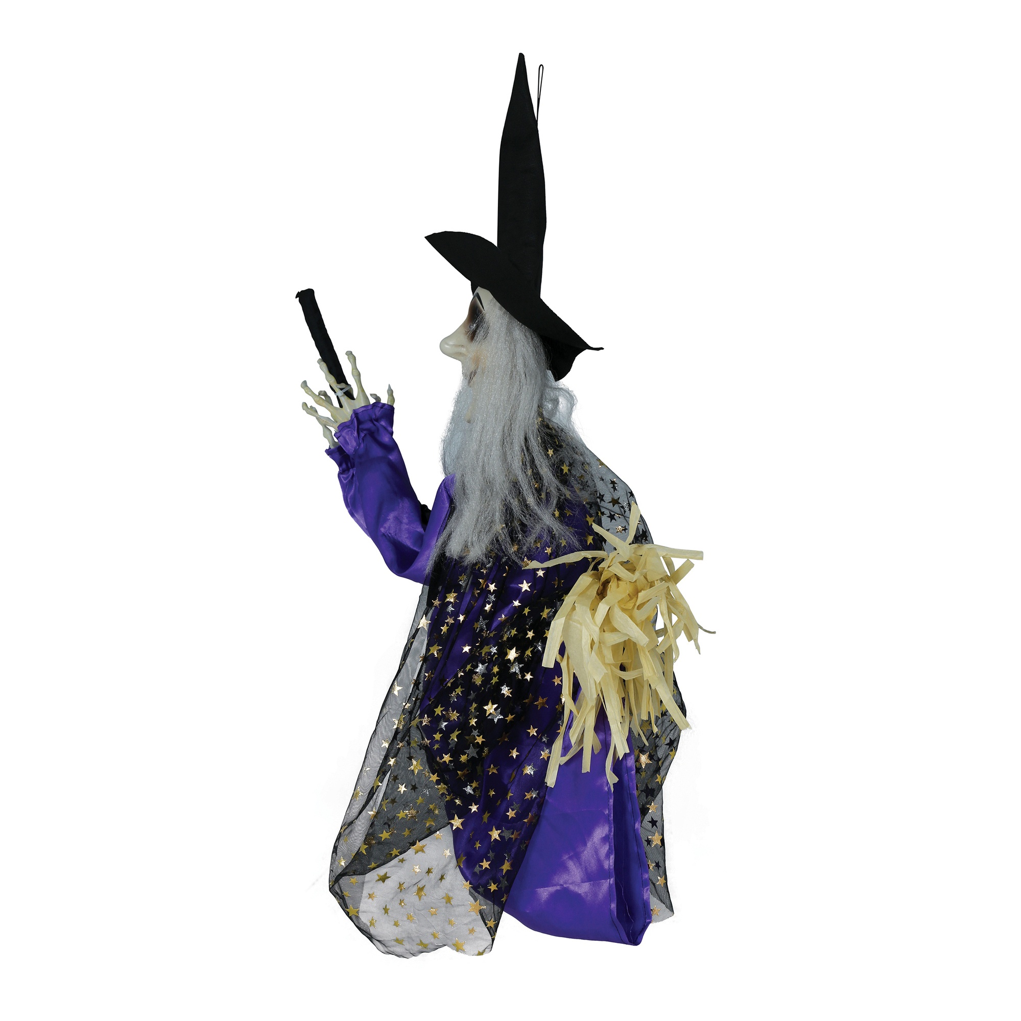 Hexe auf einem Besen mit Licht, Ton und Bewegung, 75 cm