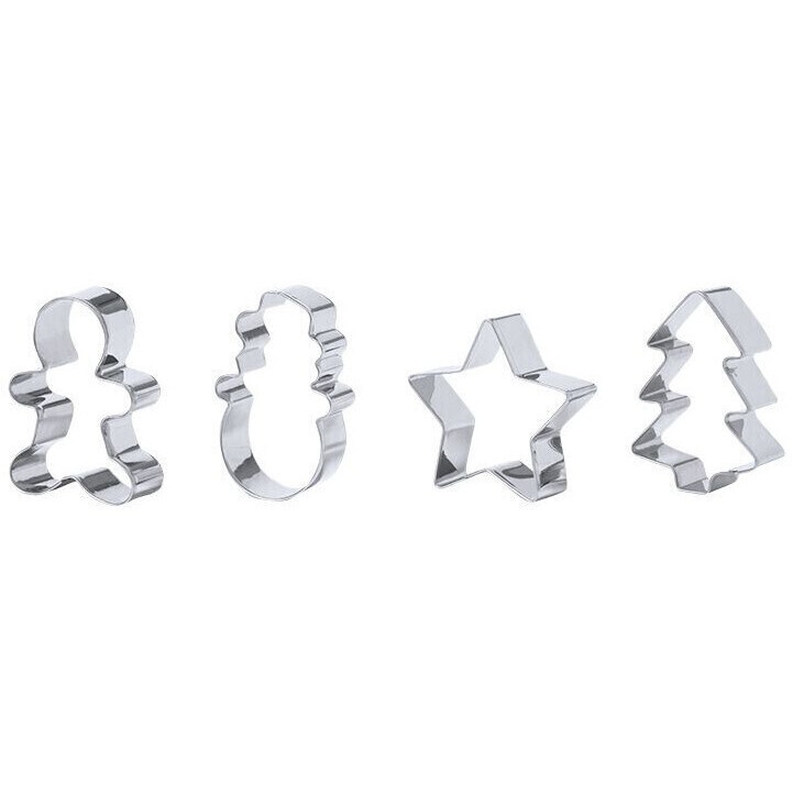 - Backset mit weihnachtlichen Formen aus Edelstahl und Nudelholz aus robustem Naturholz.