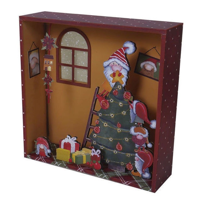 Holzfigur einer Weihnachtsszene mit Baum und Wichteln im Rahmen 25 x 7,5 cm - Artis decor