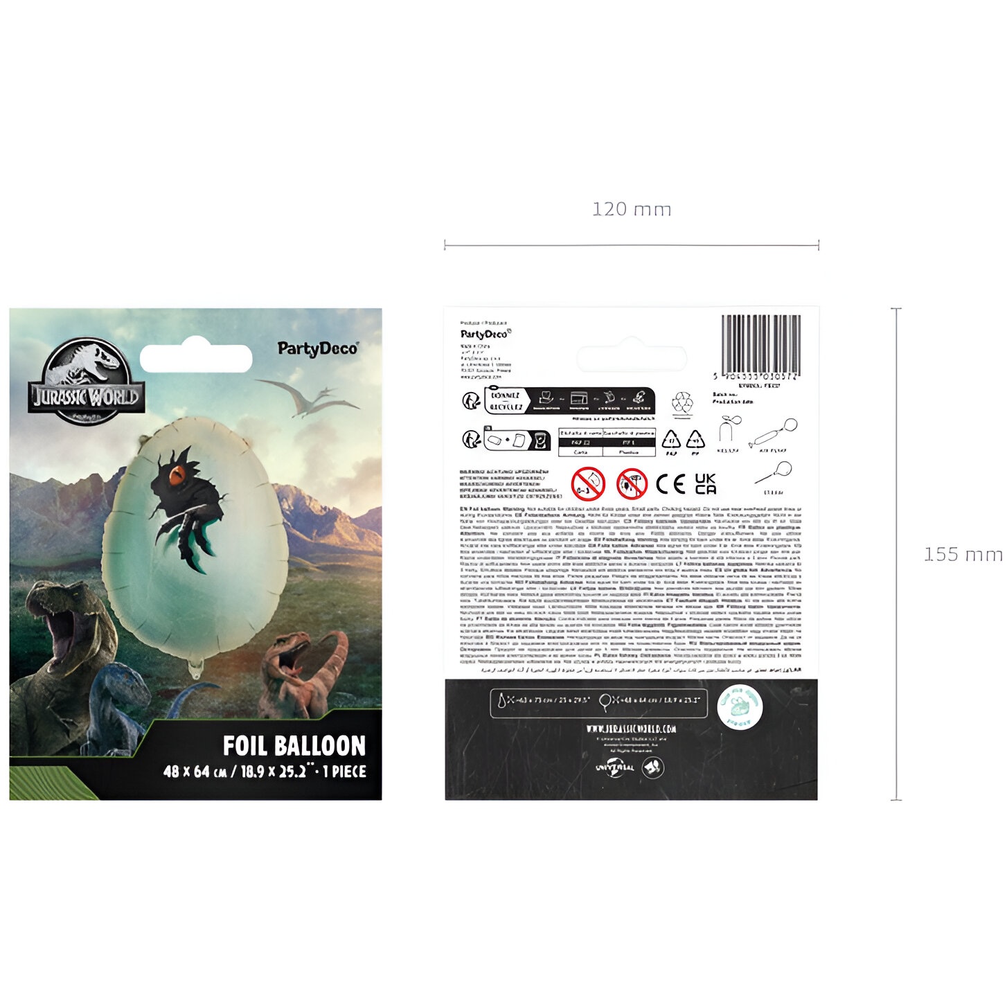Offiziell lizenzierter Jurassic World?Folienballon, gestaltet als Dinosaurier?Ei mit realistischer Darstellung von Auge und Kralle. Größe vor dem Aufblasen: ca. 63 x 75 cm (25 x 29,5"). Größe nach dem Aufblasen: ca. 48 x 64 cm (18,9 x 25,2"). Für Luft- und Heliumfüllung geeignet; der Ballon ist selbstverschließend und verfügt über Ösen zum einfachen Aufhängen und Dekorieren. Ein Strohhalm zum Aufblasen ist enthalten.