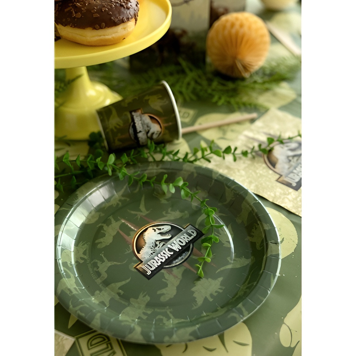 Jurassic World Einweg-Teller mit Dinosaurier-Illustrationen und dem ikonischen Logo der Reihe. Runde Teller mit 23 cm Durchmesser und farbenfrohem Design, das Spaß macht und für thematische Stimmung am Tisch sorgt. Offiziell lizenziertes Jurassic World-Design - ideal für Ihre Kinderpartys und Feierlichkeiten.