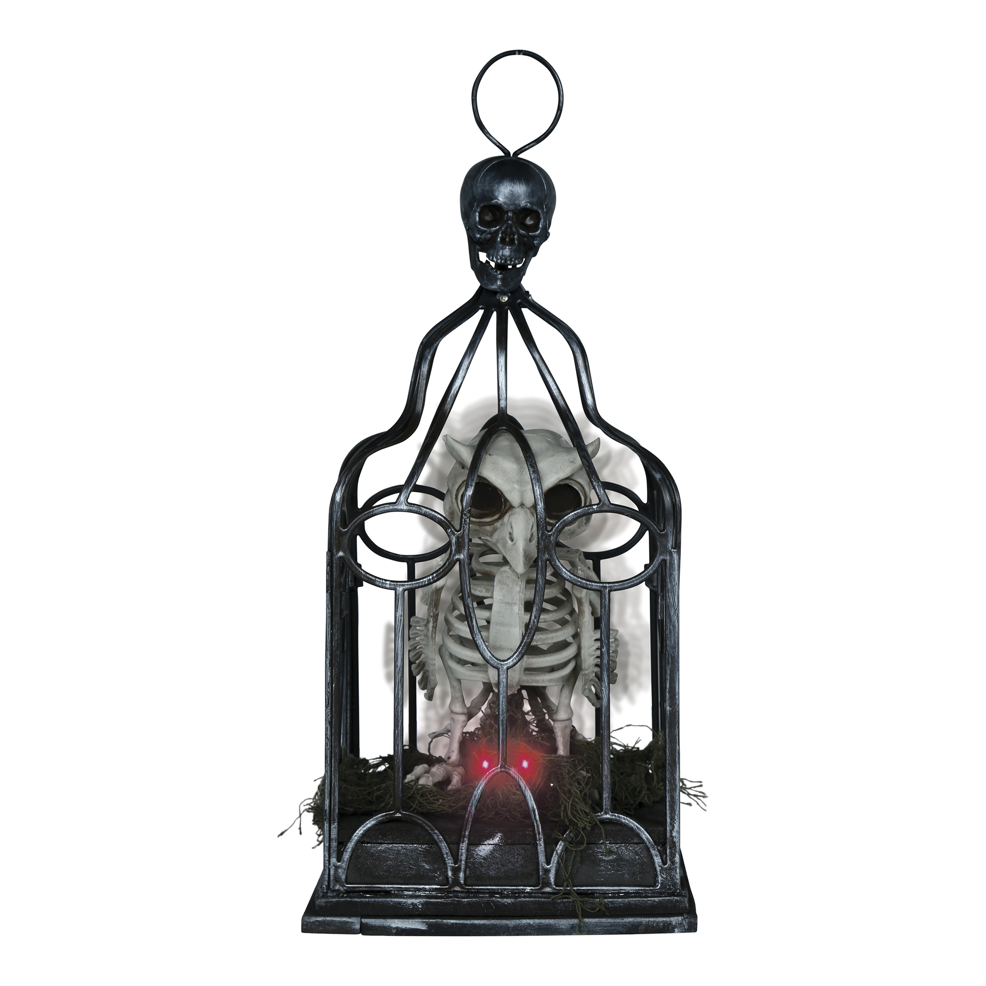 Käfig mit Eulen-Skelett mit Licht, Ton und Bewegung - 33 cm