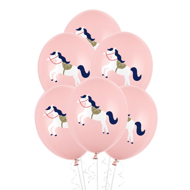 Elegante rosa Luftballons mit Karussellpferd-Motiv, perfekt für Ihre Blumensträuße und zur Dekoration Ihrer Party.
