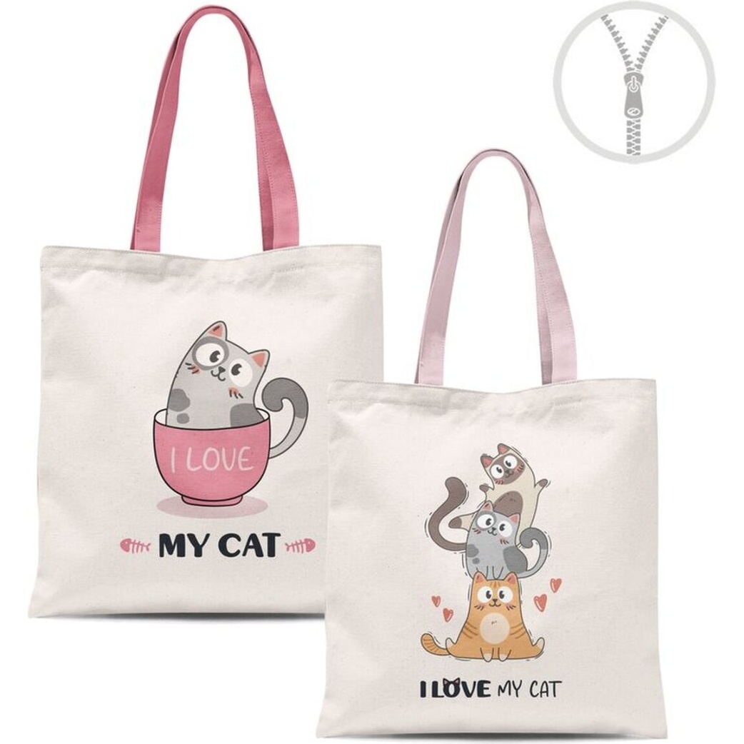 Katzen-Stofftasche mit Reißverschluss - 1 Stück
