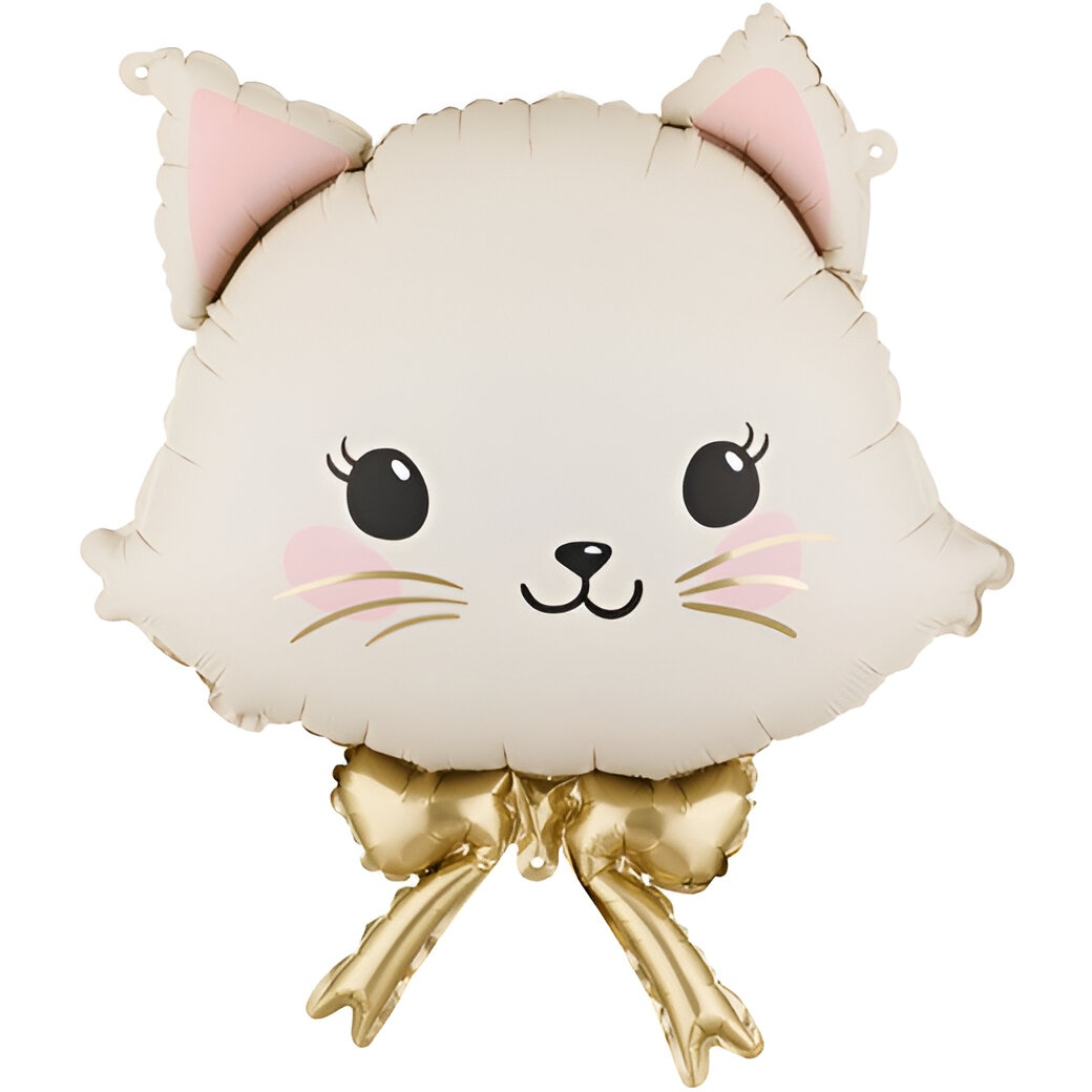 Kawaii-Folienballon in Katzenkopfform in Creme- und Rosatönen mit glänzender goldener Schleife. Verleiht Kinderfeiern und Fotokulissen eine süße, elegante Note.