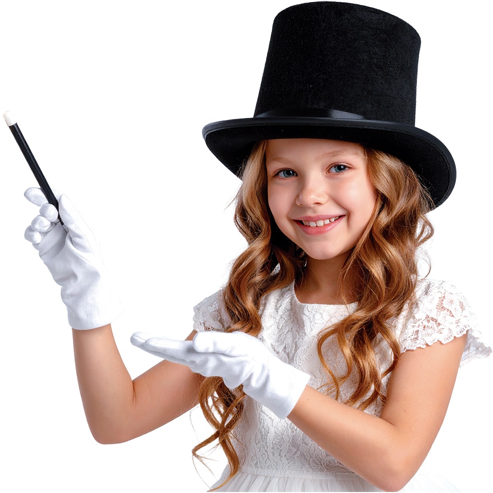 Kinder-Zauberset mit Zylinder, Handschuhen und Zauberstab