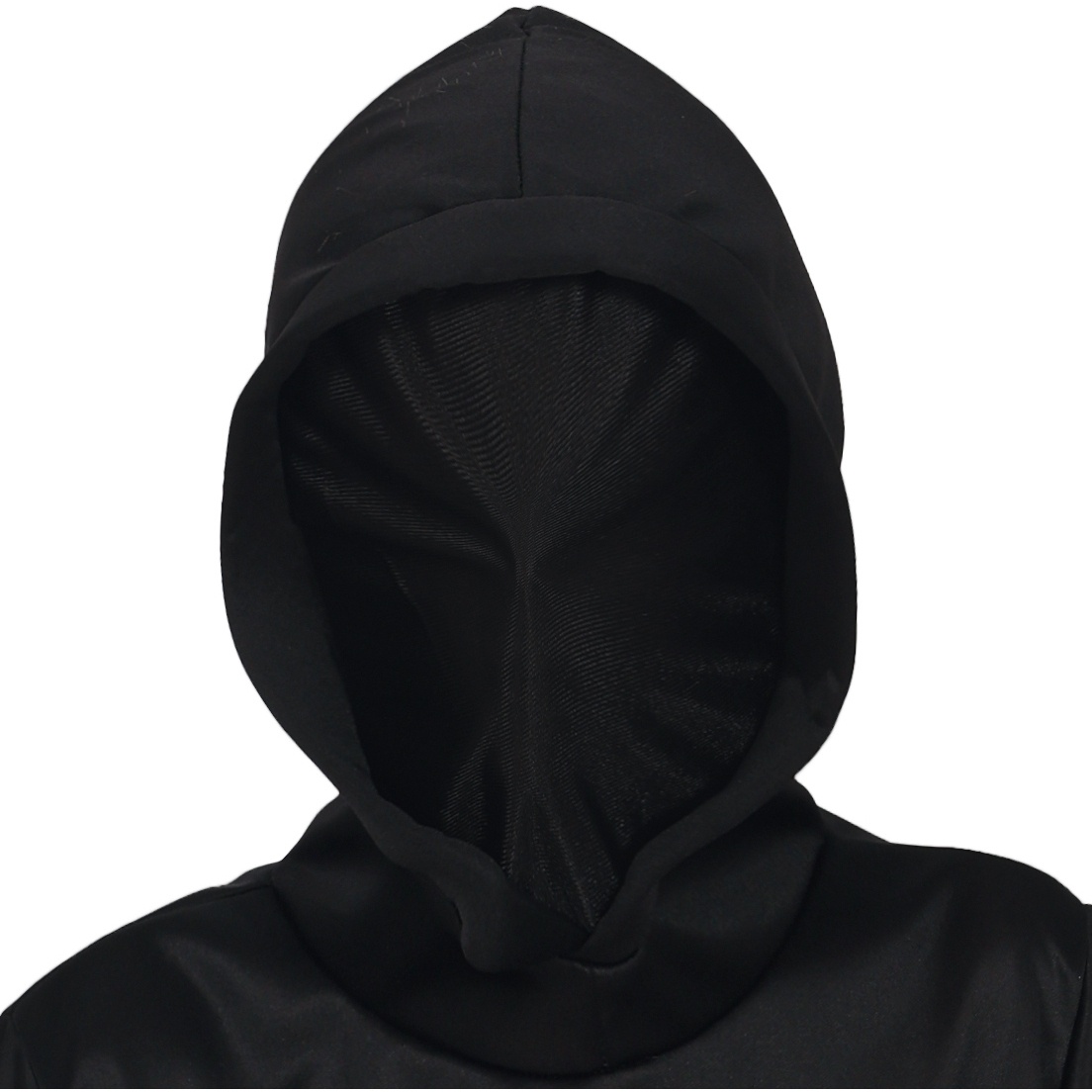 Ein unheimliches Kostüm, das das Gesicht des Kindes verdeckt.