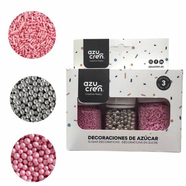 Zutaten silberne Perlen: Zucker, Maisstärke, Maltodextrin, Fischgelatine, Farbstoff E174.