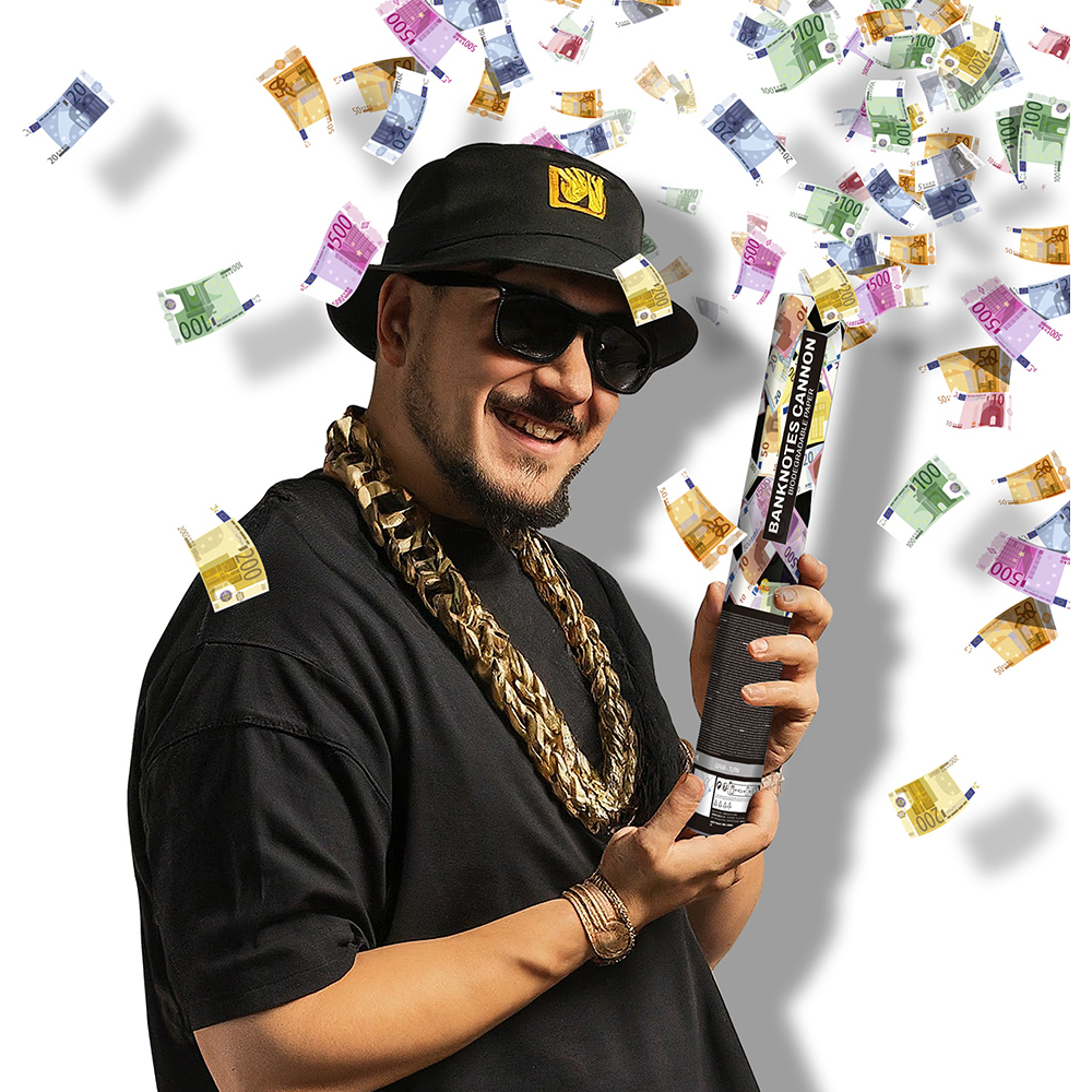Konfetti-Kanone mit Euro?Banknoten, 40 cm