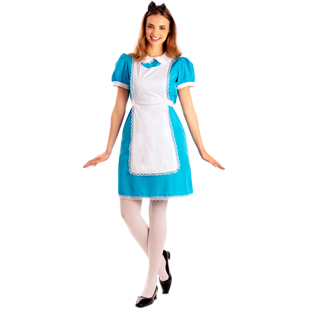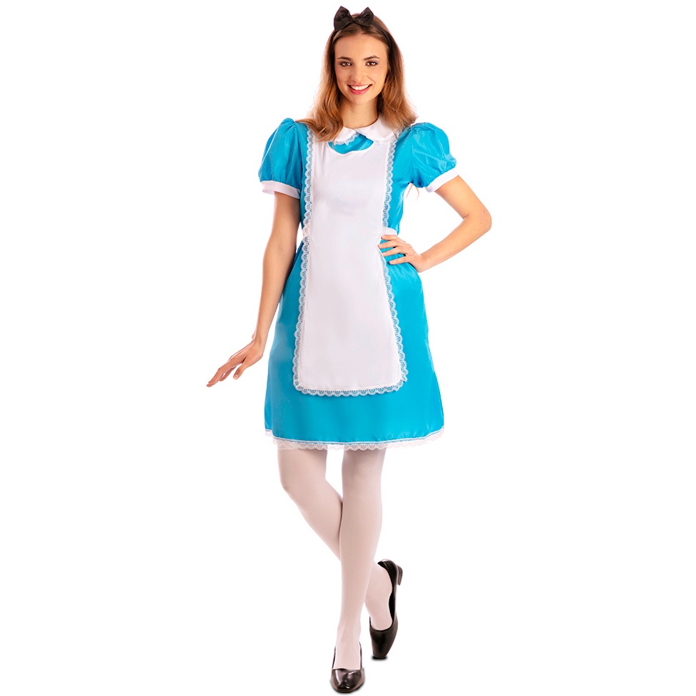 Blau-weißes Alice-Kostüm für Damen