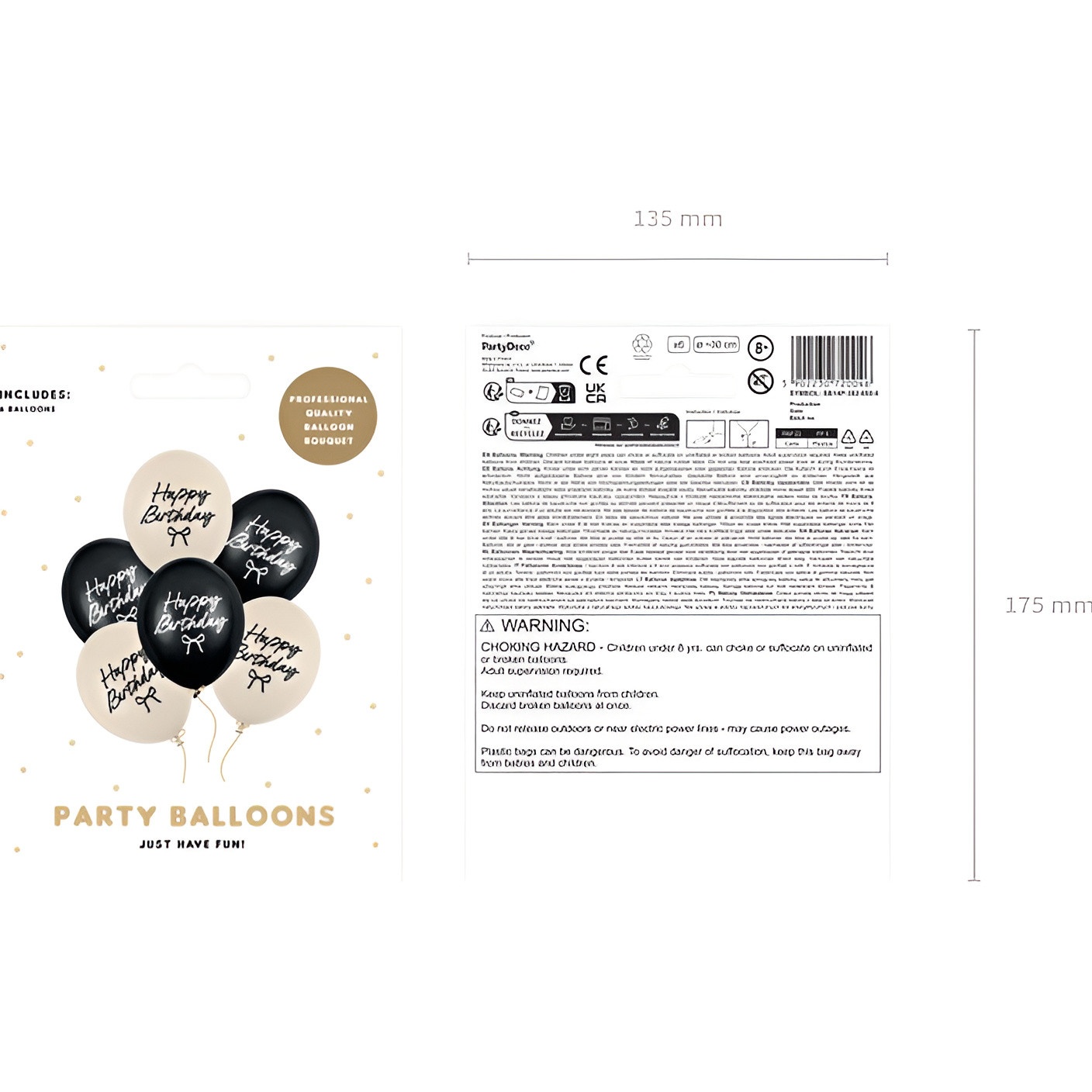 Latexballons 'Elegant Happy Birthday' 30 cm - 6 Stück