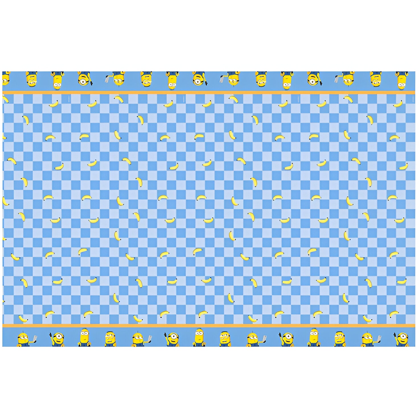 Einweg-Tischdecke mit Minions-Motiv in Blau- und Gelbtönen. Der karierte Hintergrund ist mit kleinen Bananen versehen, der Rand zeigt die lustigen Figuren - ideal, um den Tisch der Kleinen fröhlich zu gestalten. Ausgeklapptes Maß: 180 x 120 cm. Das leichte Einweg-Design ermöglicht Ihnen ein schnelles Auflegen und einfaches Entfernen nach der Feier.