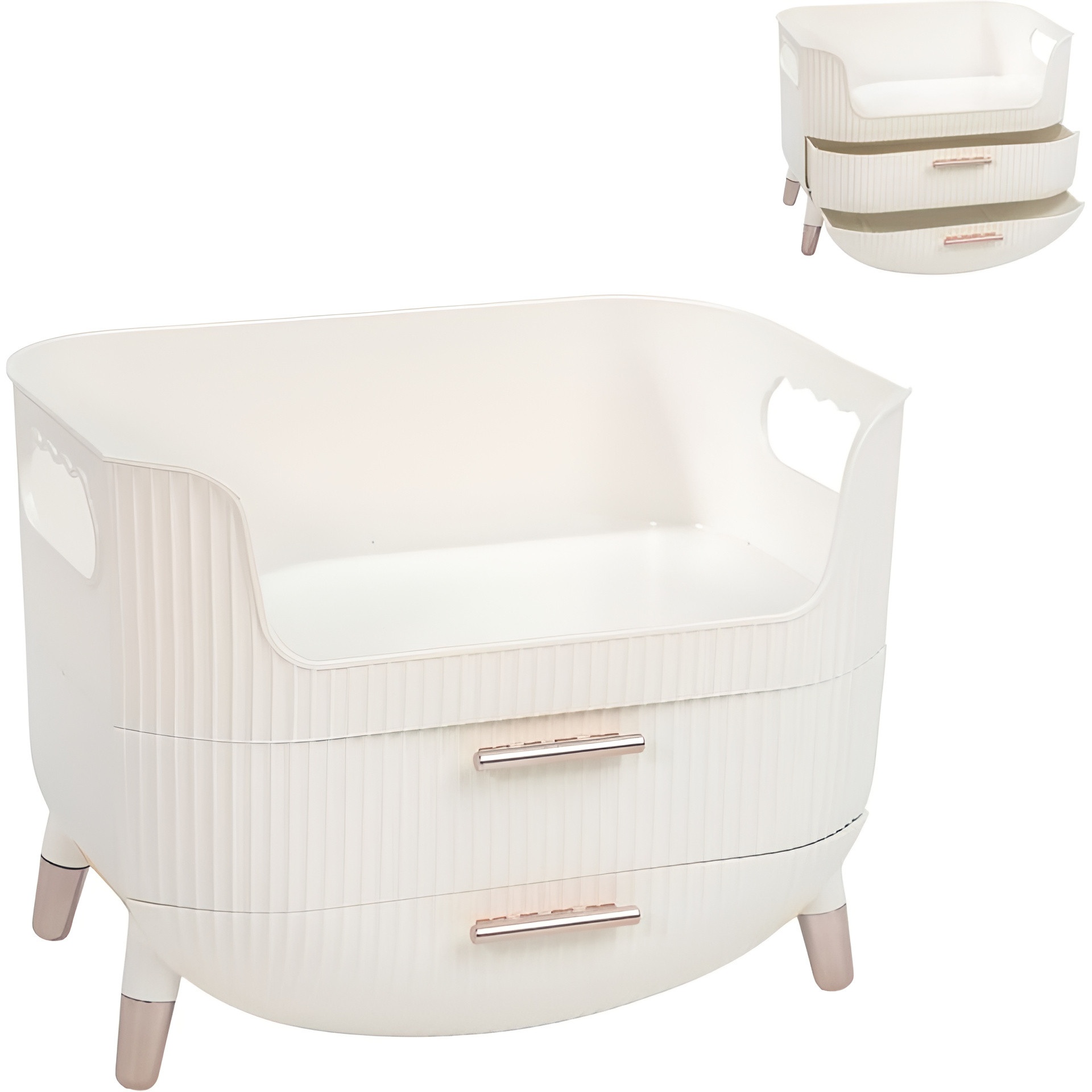 - Integrierte Seitengriffe für einen komfortablen und praktischen Transport zwischen Räumen.