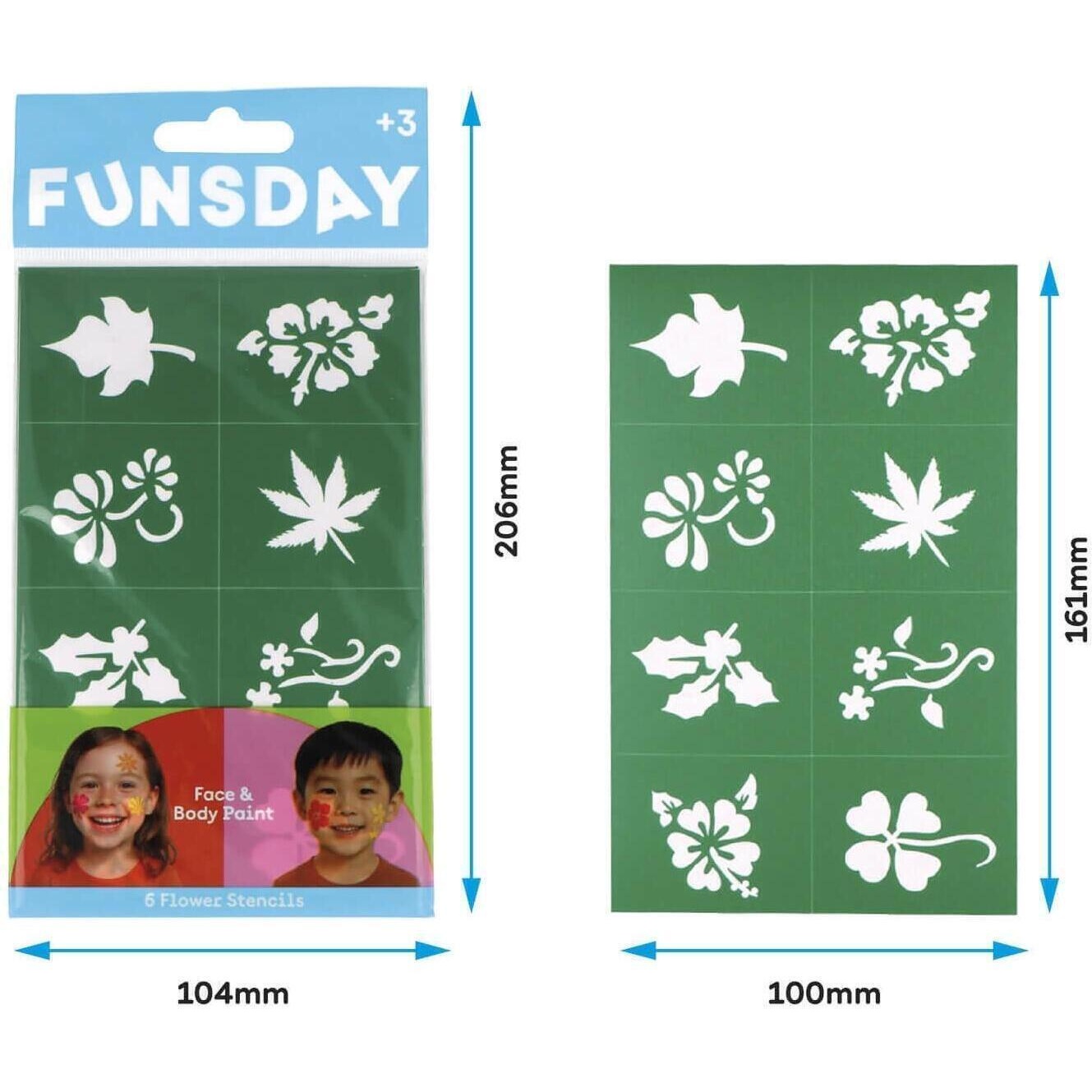 • Fantastische Schablonen mit zarten, magischen Motiven, mit denen Sie funkelndes, farbenfrohes Make-up gestalten können: Flügel, Arabesken, Sterne und bezaubernde Ornamente. Ideal für kreative Looks und phantasievolle Designs.