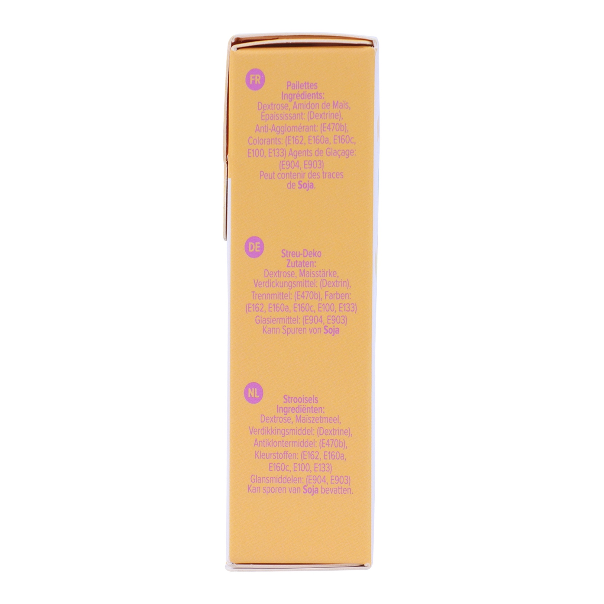 Zutaten: Dextrose, Maisstärke, Verdickungsmittel: (Dextrin), Antiklumpmittel: (E470b), Farbstoffe: (E162, E160a, E160c, E100, E133), Überzugsmittel: (E904, E903).