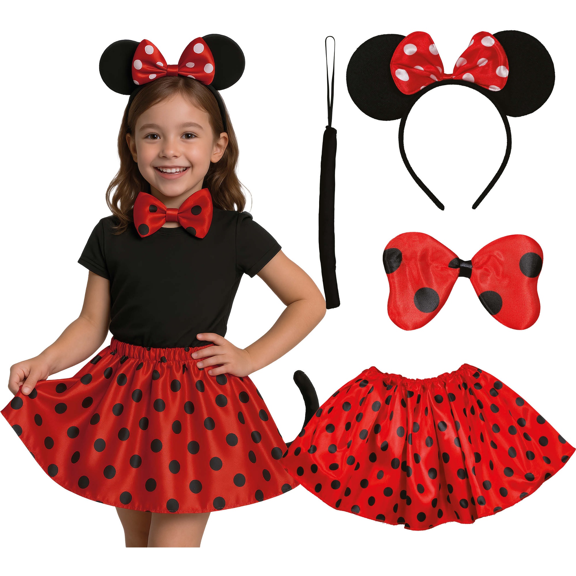 Charmantes Accessoire-Set im Mäuse-Look für Mädchen mit fröhlichem Tupfenmuster, das einen klassischen, verspielten Akzent setzt.