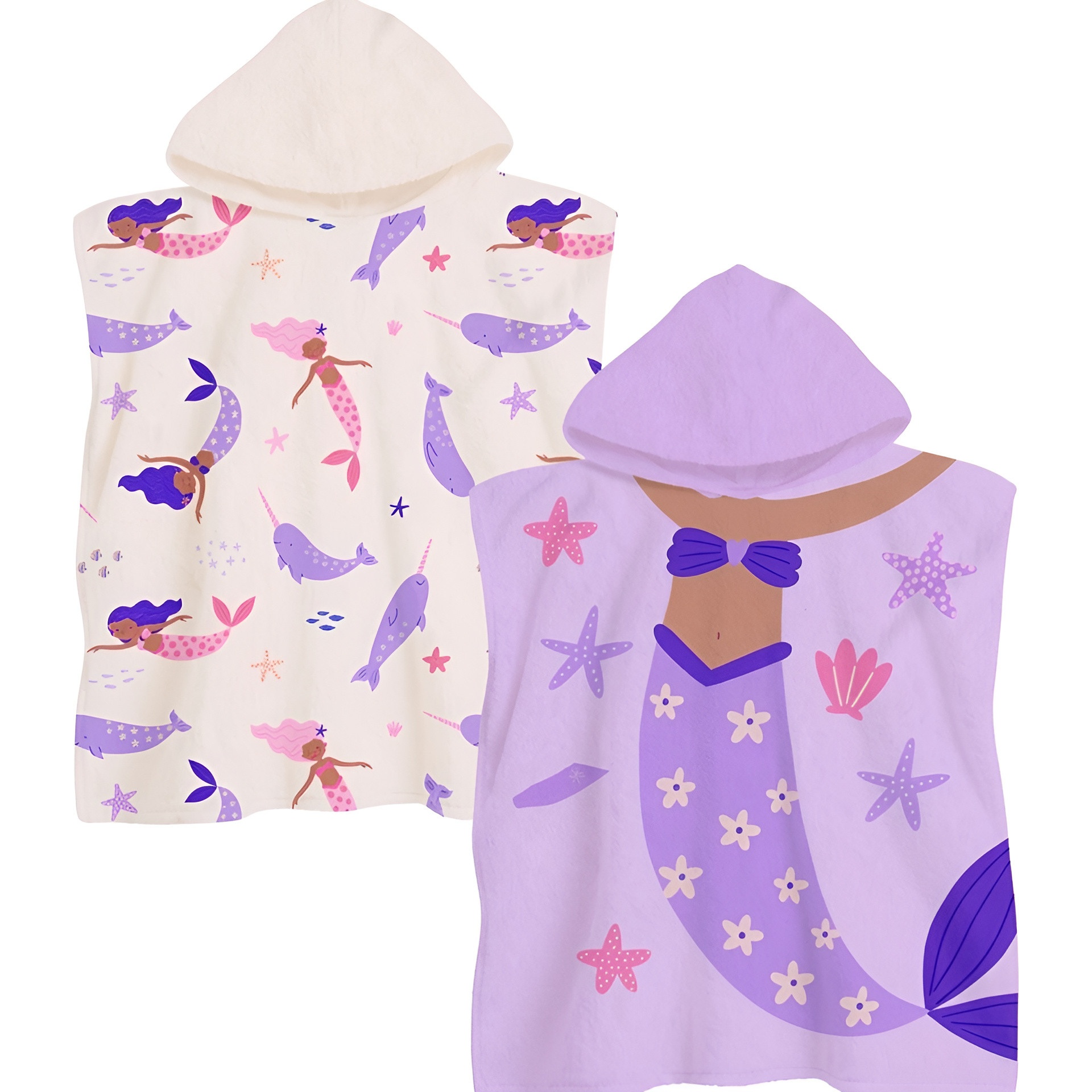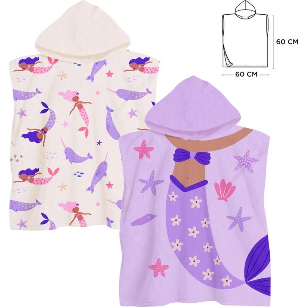 Fröhlich gestaltetes Poncho-Handtuch mit Meerjungfrauenmotiv, das Ihre Kinder zum Spielen und zur Fantasie anregt.
