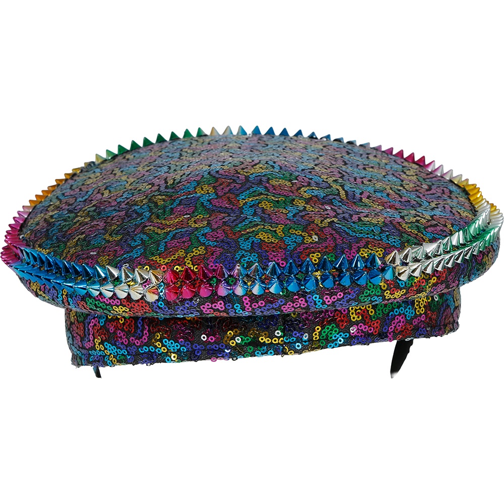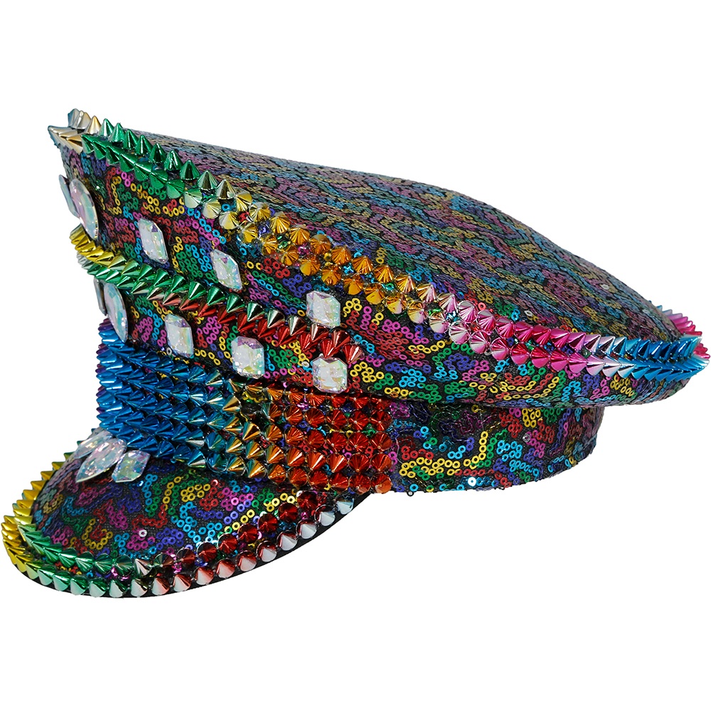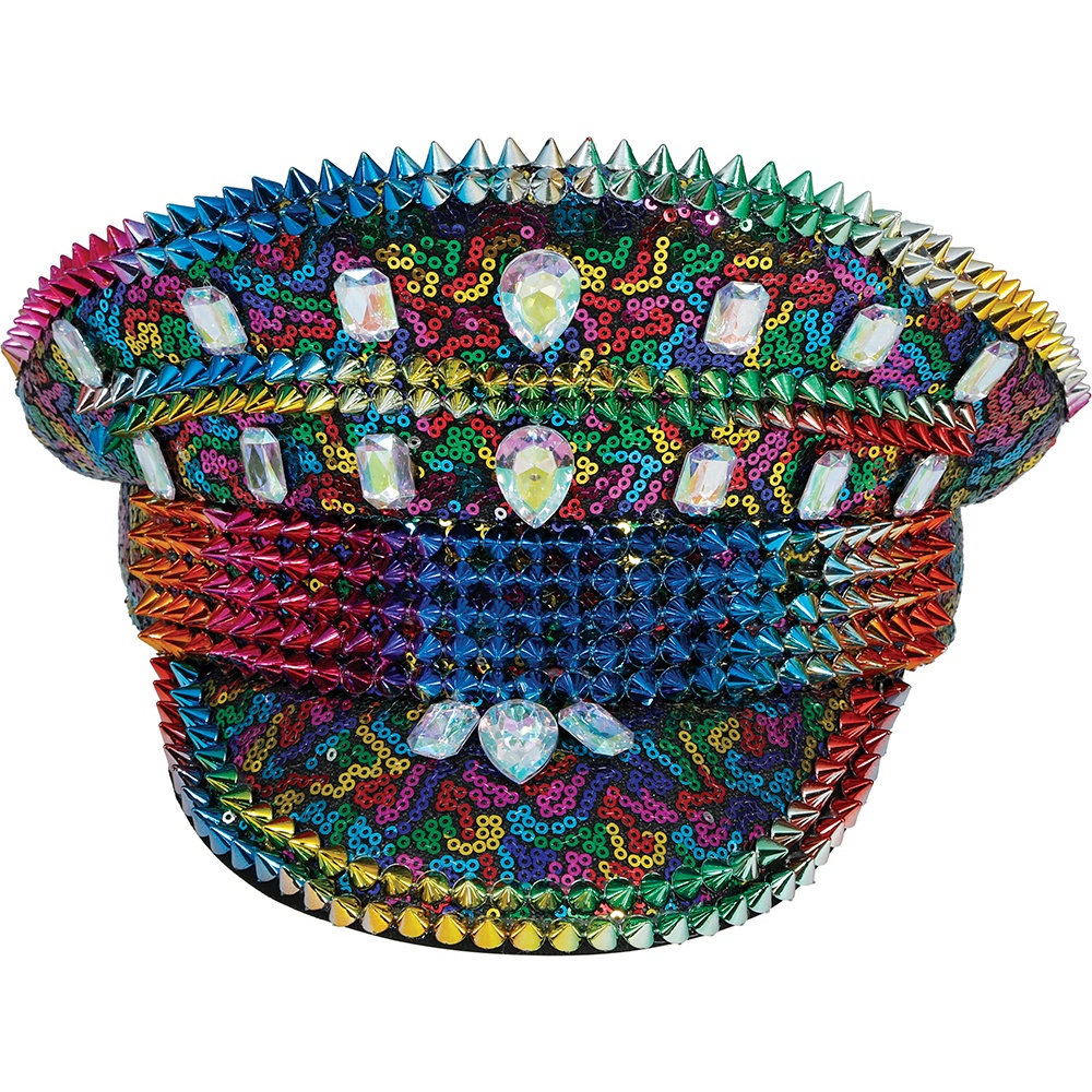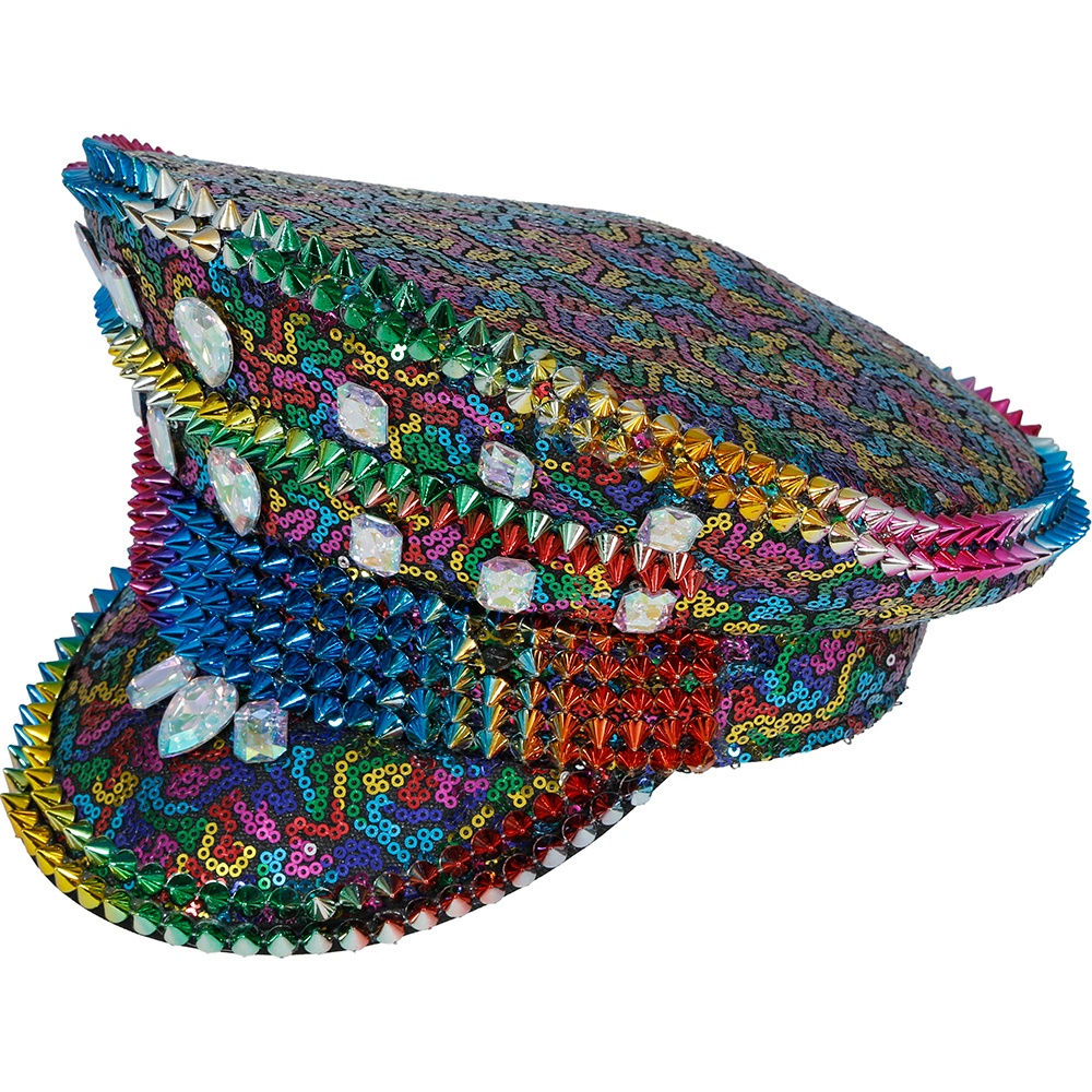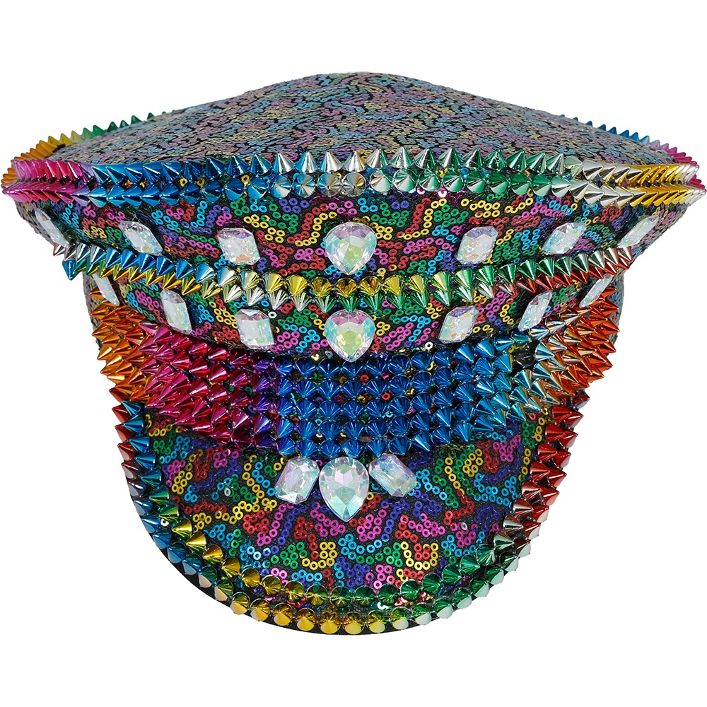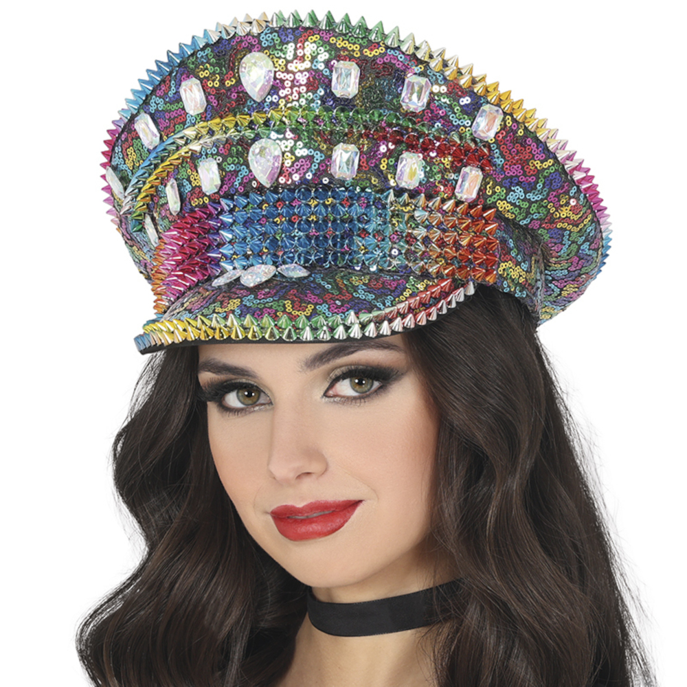 Mehrfarbige Polizeimütze mit Strasssteinen und Nieten