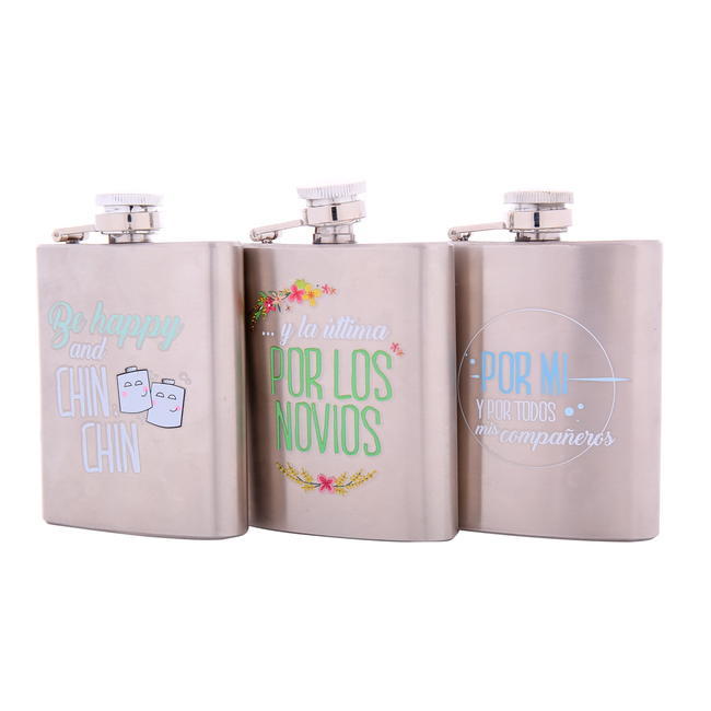 Metallflasche mit verschiedenen Sprüchen für Hochzeiten - 1 Stück