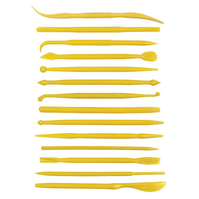 Set hochwertiger Miniaturwerkzeuge von PME aus lebensmittelechtem Kunststoff. Sie sind ideal für die Herstellung von Blumen und kleinen Blättern aus Zuckerpaste mit absoluter Präzision.