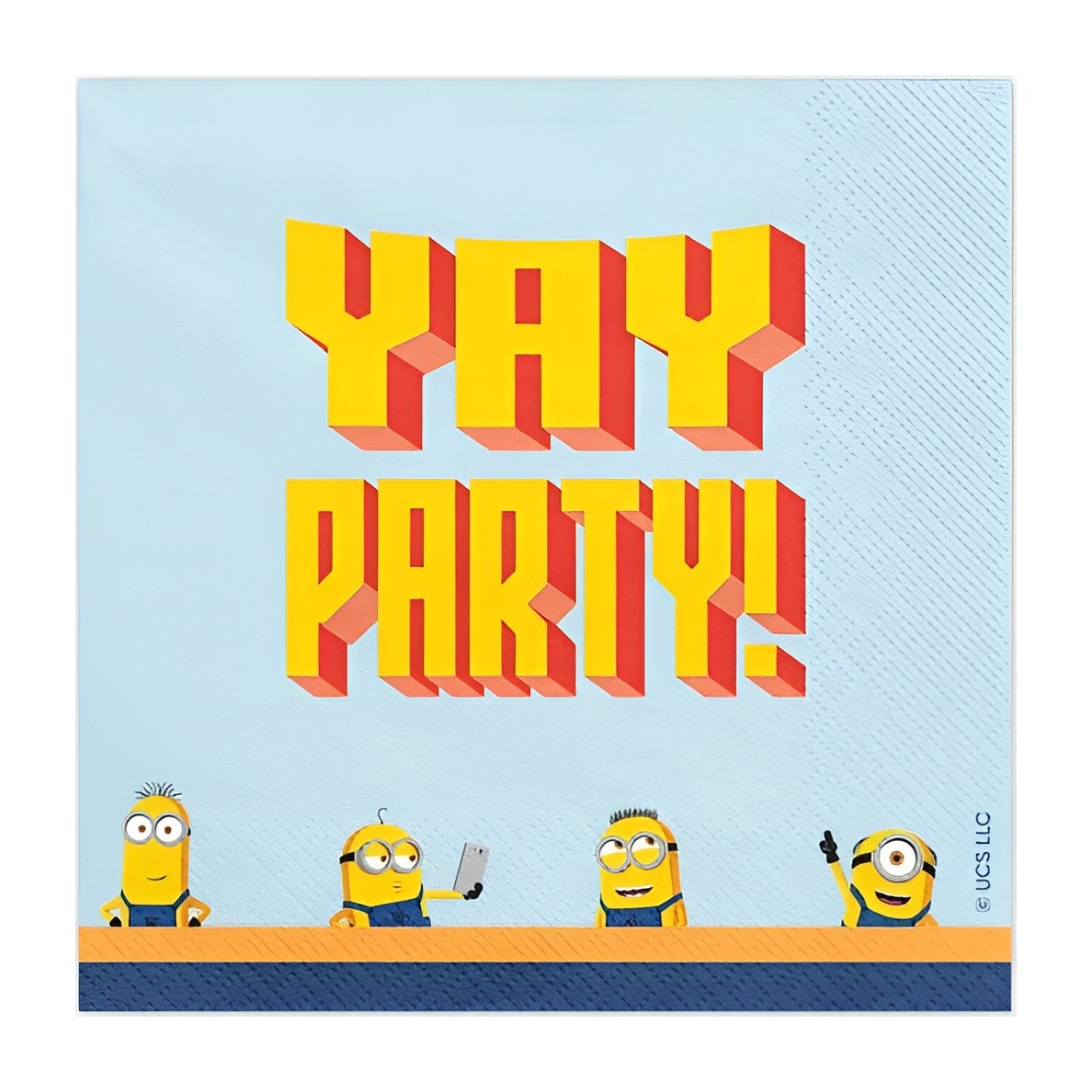 Papierservietten mit den ikonischen Minions und der Aufschrift Yay Party! in Blau und Gelb. Das fröhliche Design verleiht Ihrem Tisch einen wiedererkennbaren, lustigen Akzent. Zweilagig für mehr Stabilität und eine angenehme Haptik. Aufgefaltet: 33 x 33 cm; gefaltet: 16,5 x 16,5 cm. Praktische Verpackung mit 20 Stück.